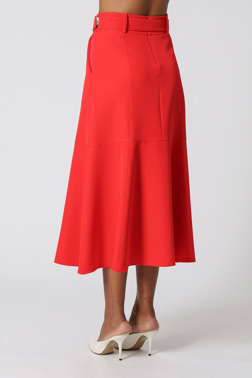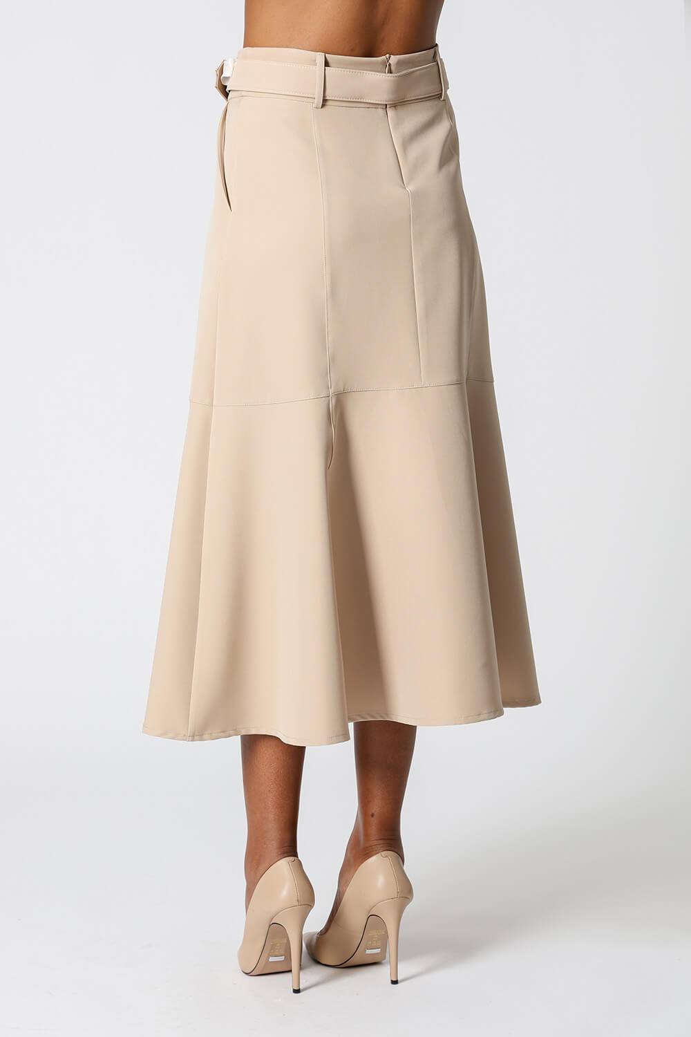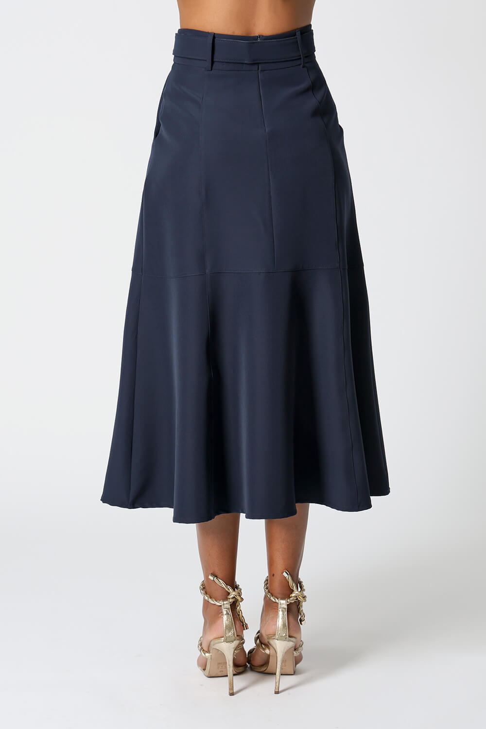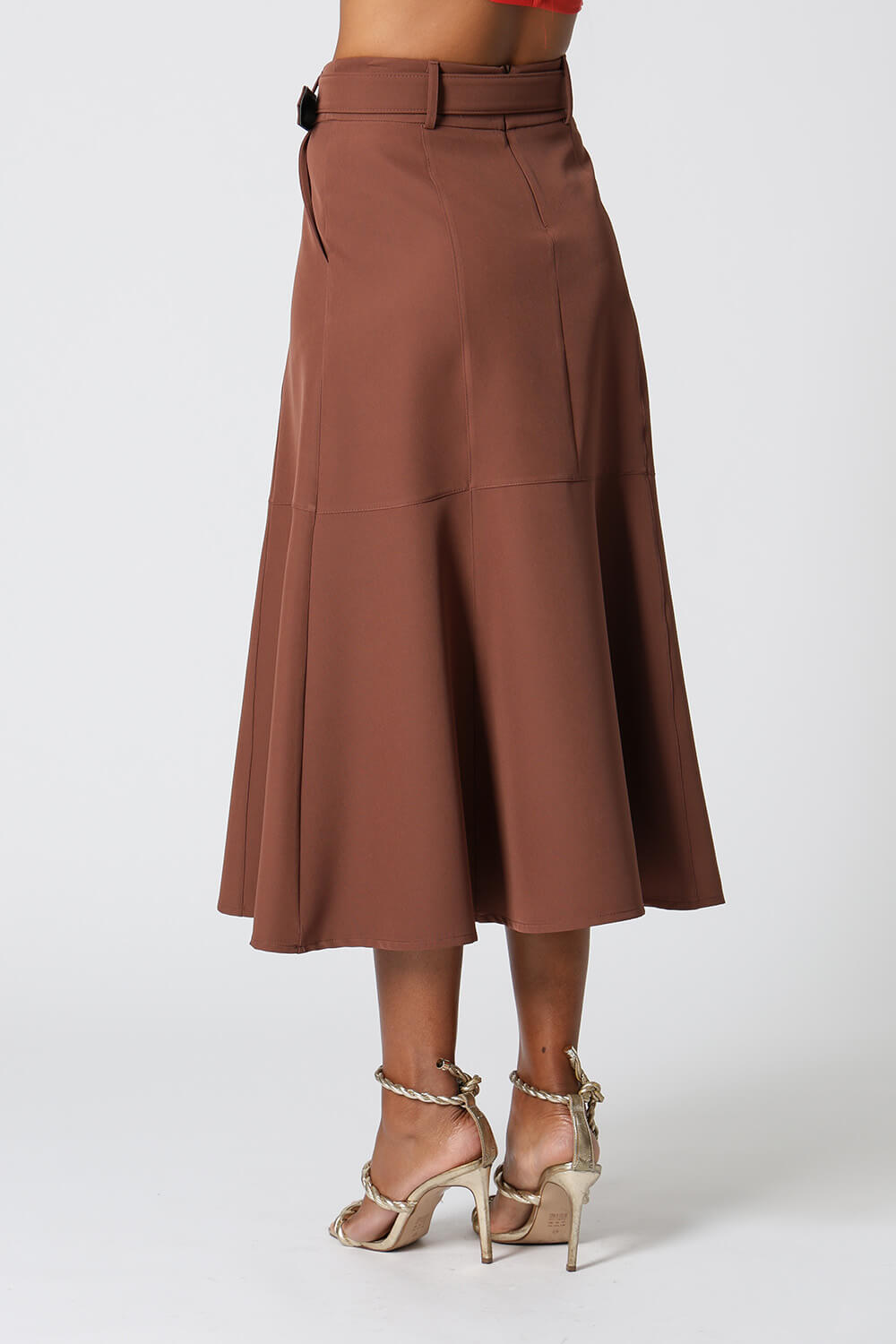 Saia midi com detalhes de recortes, uma peça elegante que te proporciona diversos looks para ocasiões especiais.