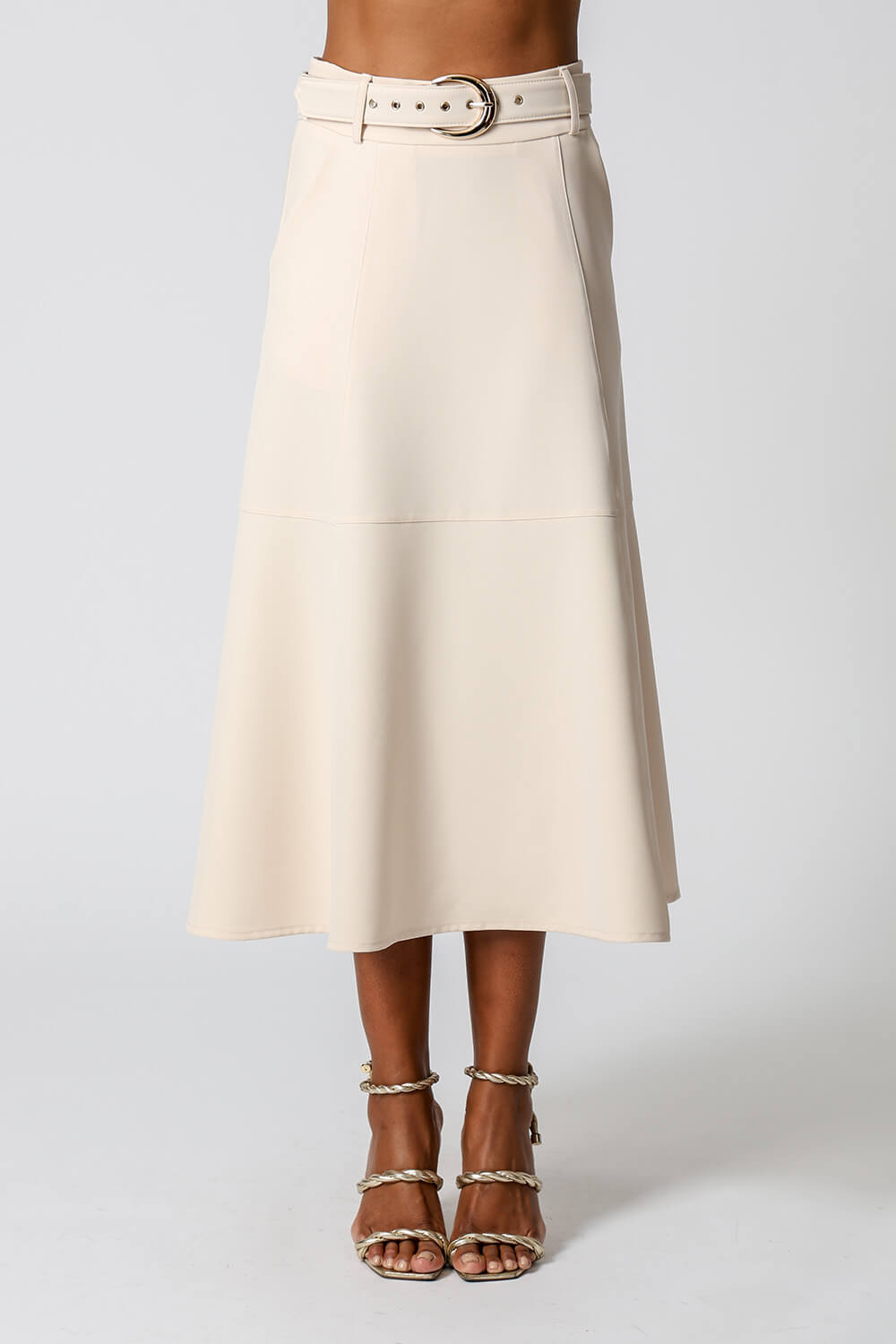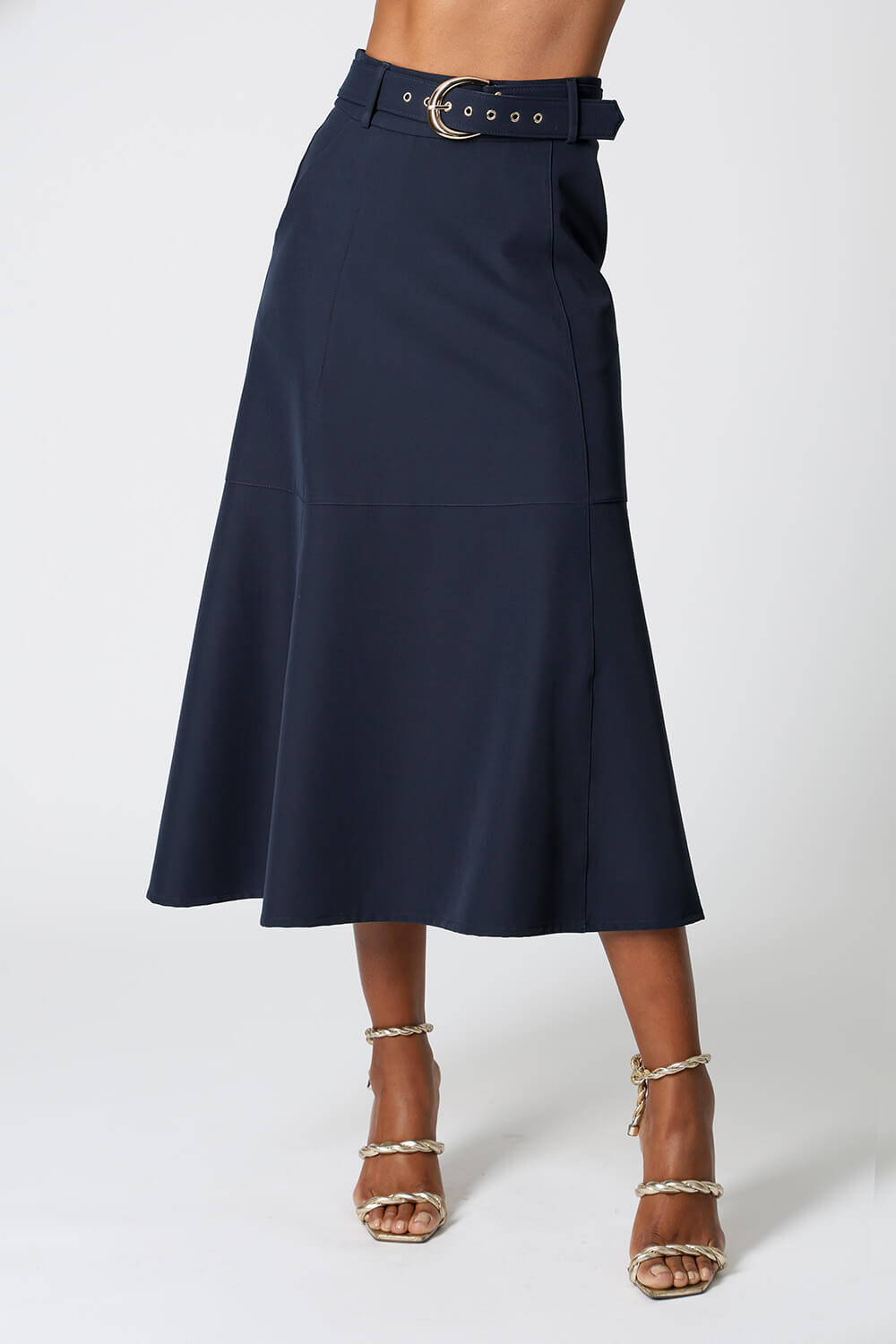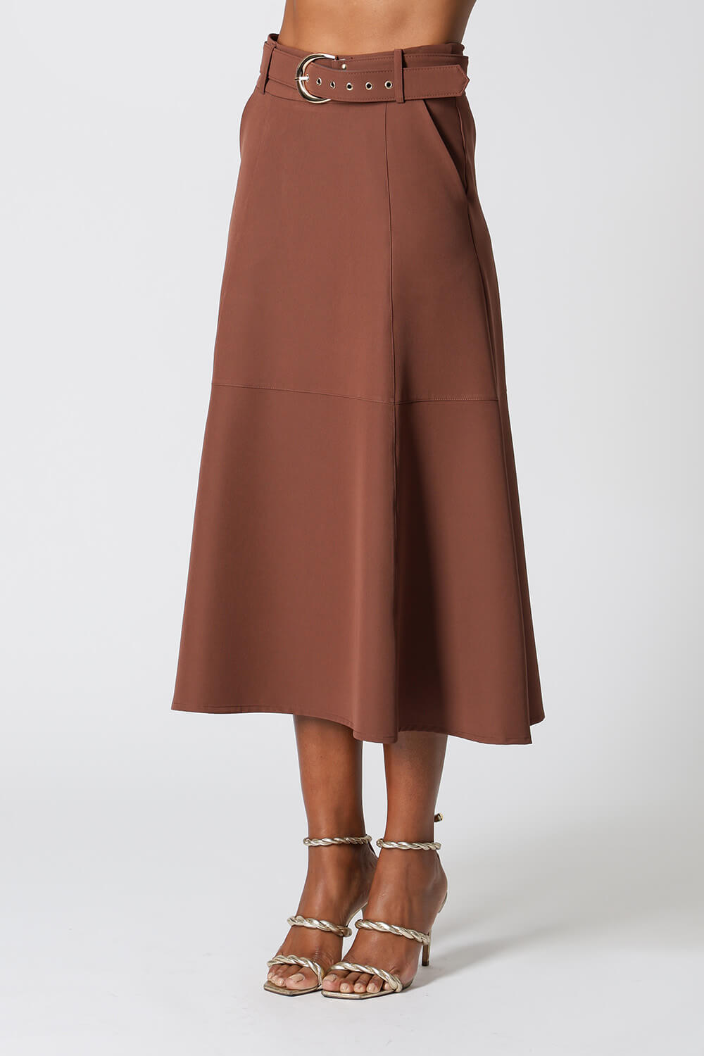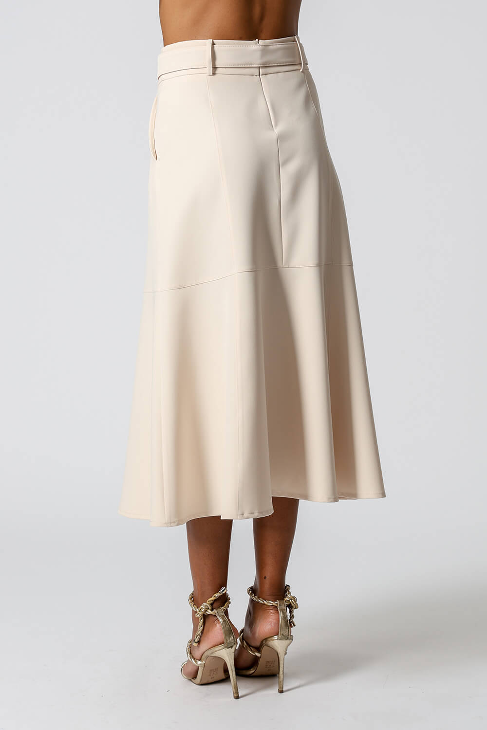 Saia midi com detalhes de recortes, uma peça elegante que te proporciona diversos looks para ocasiões especiais.