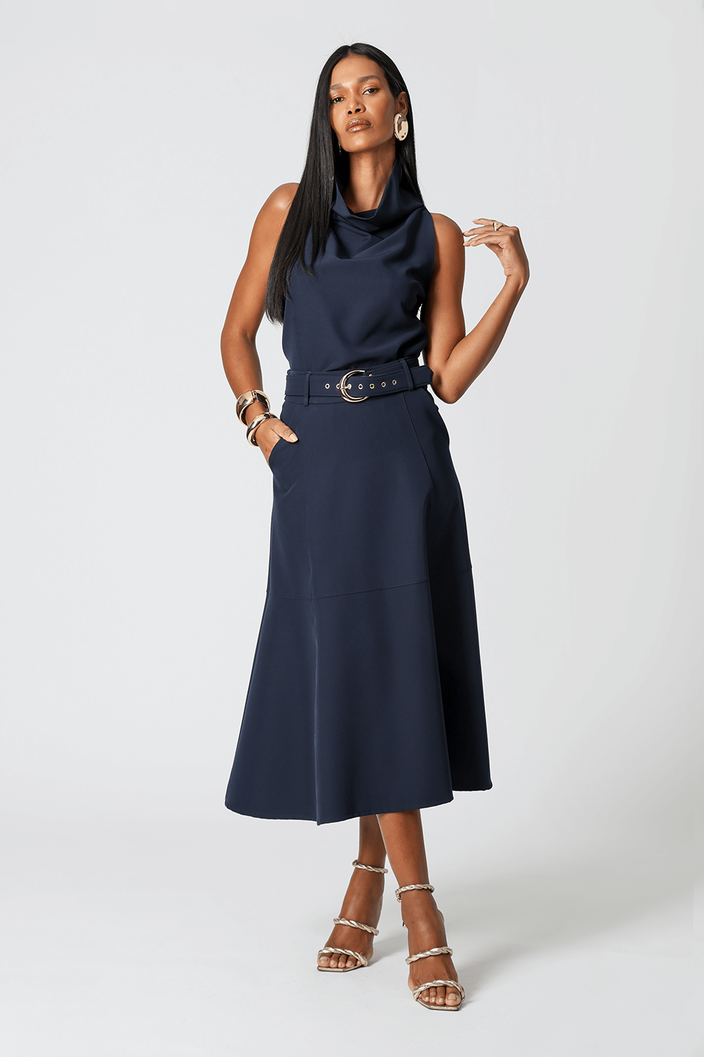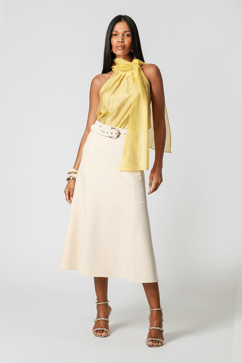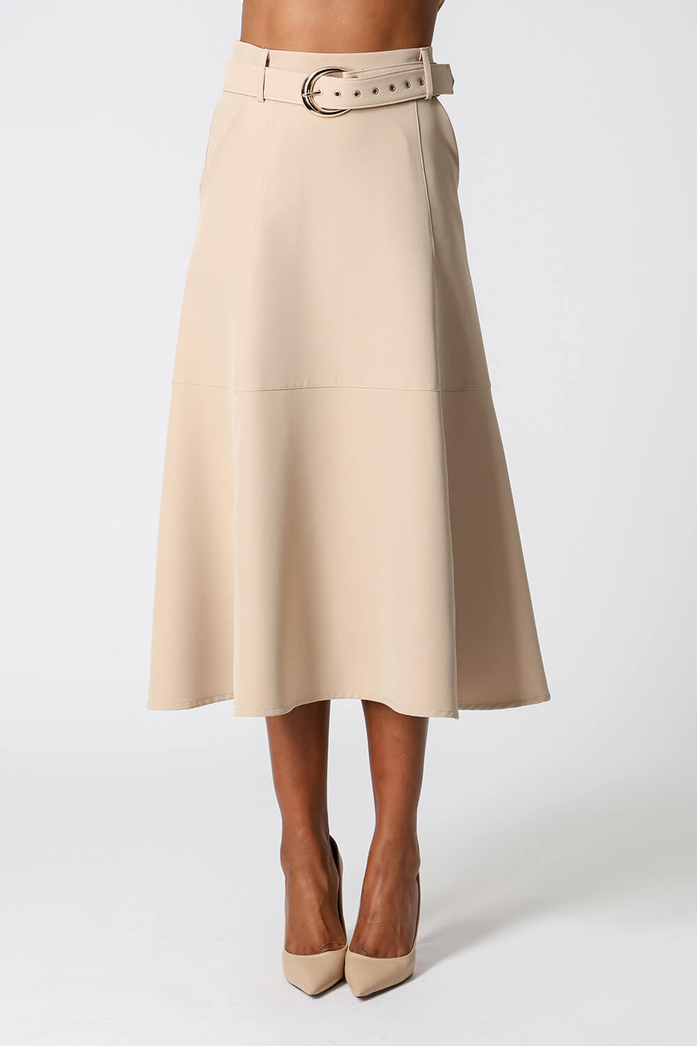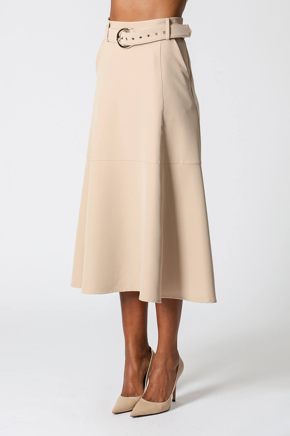 Saia midi com detalhes de recortes, uma peça elegante que te proporciona diversos looks para ocasiões especiais.