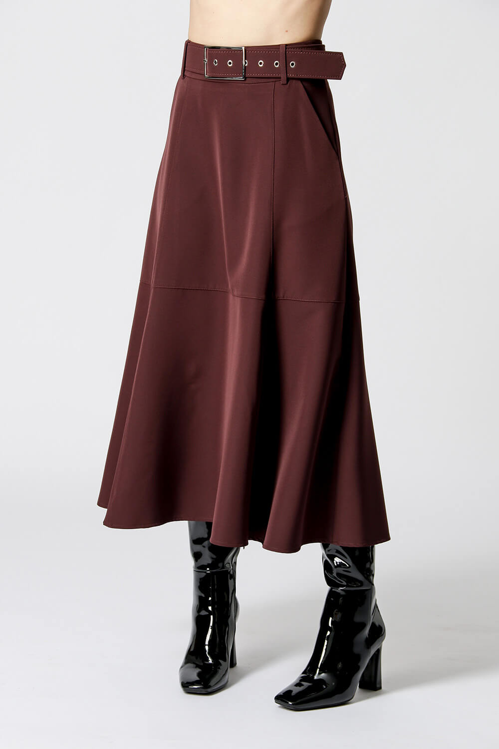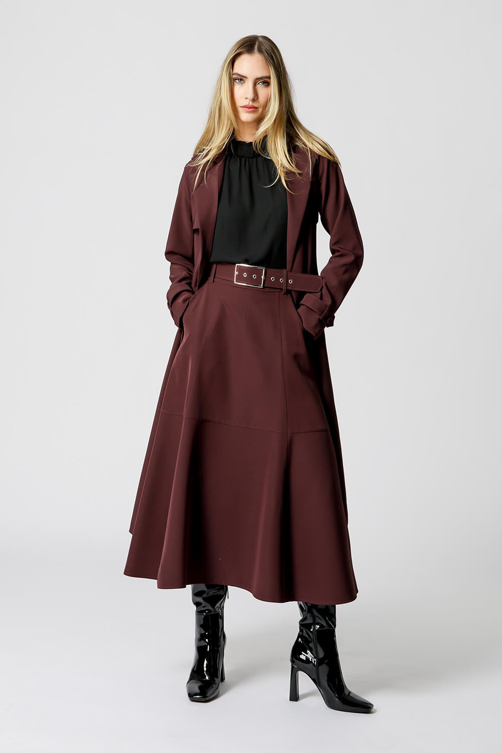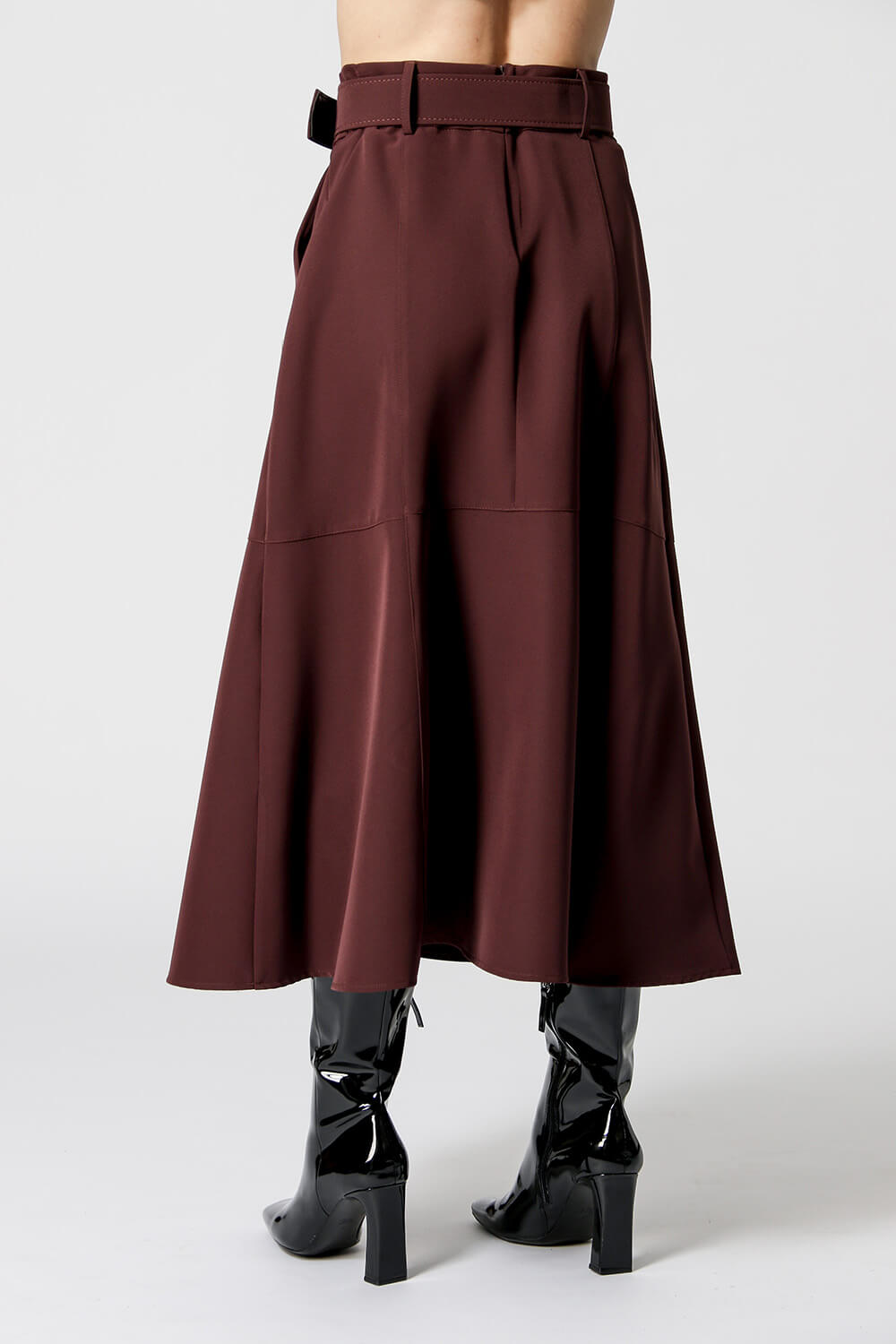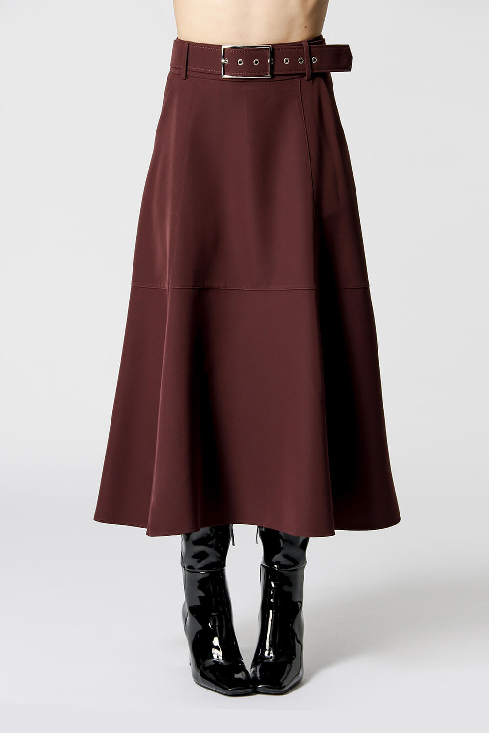 • Saia Midi De Alfaiataria Com Cinto - CAFE 1