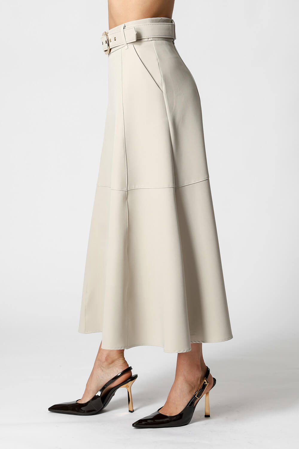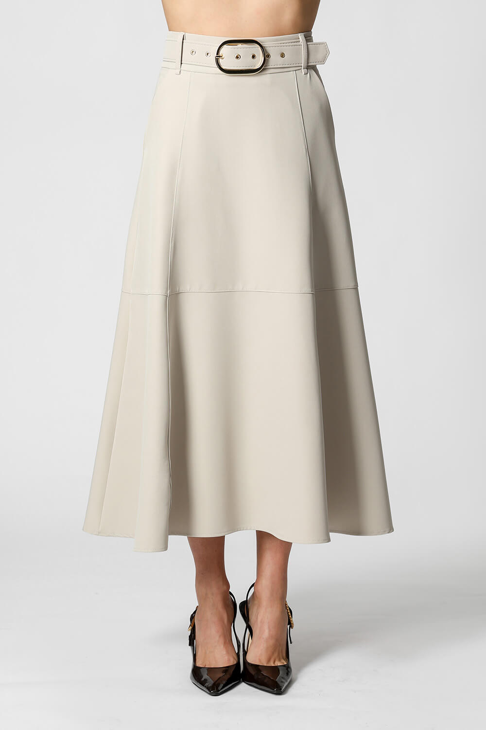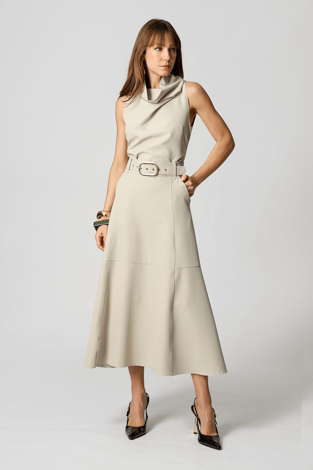 Saia midi com detalhes de recortes, uma peça elegante que te proporciona diversos looks para ocasiões especiais.