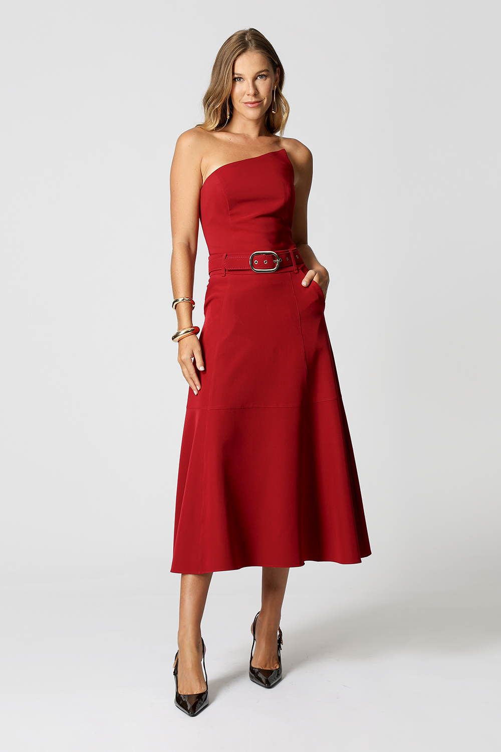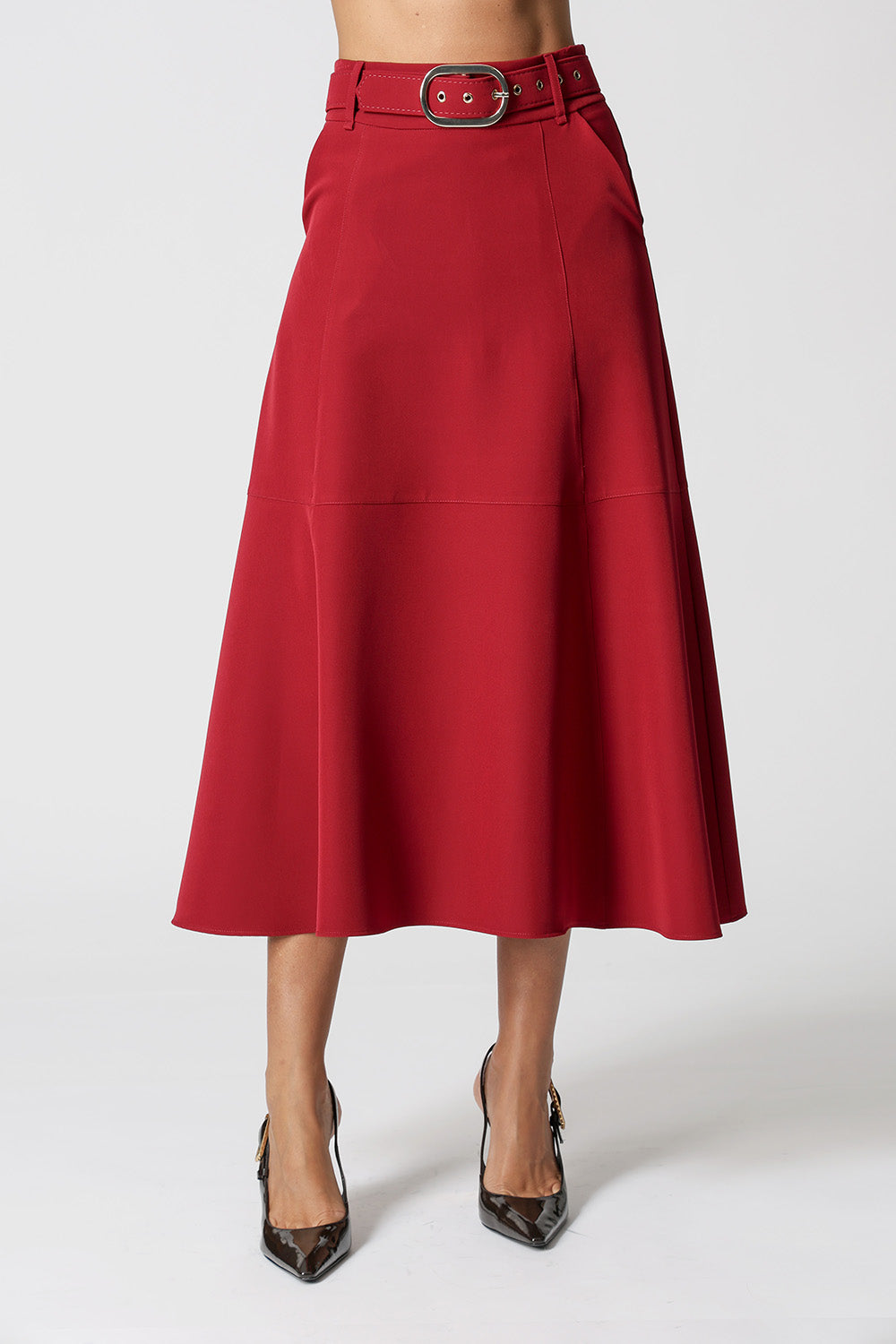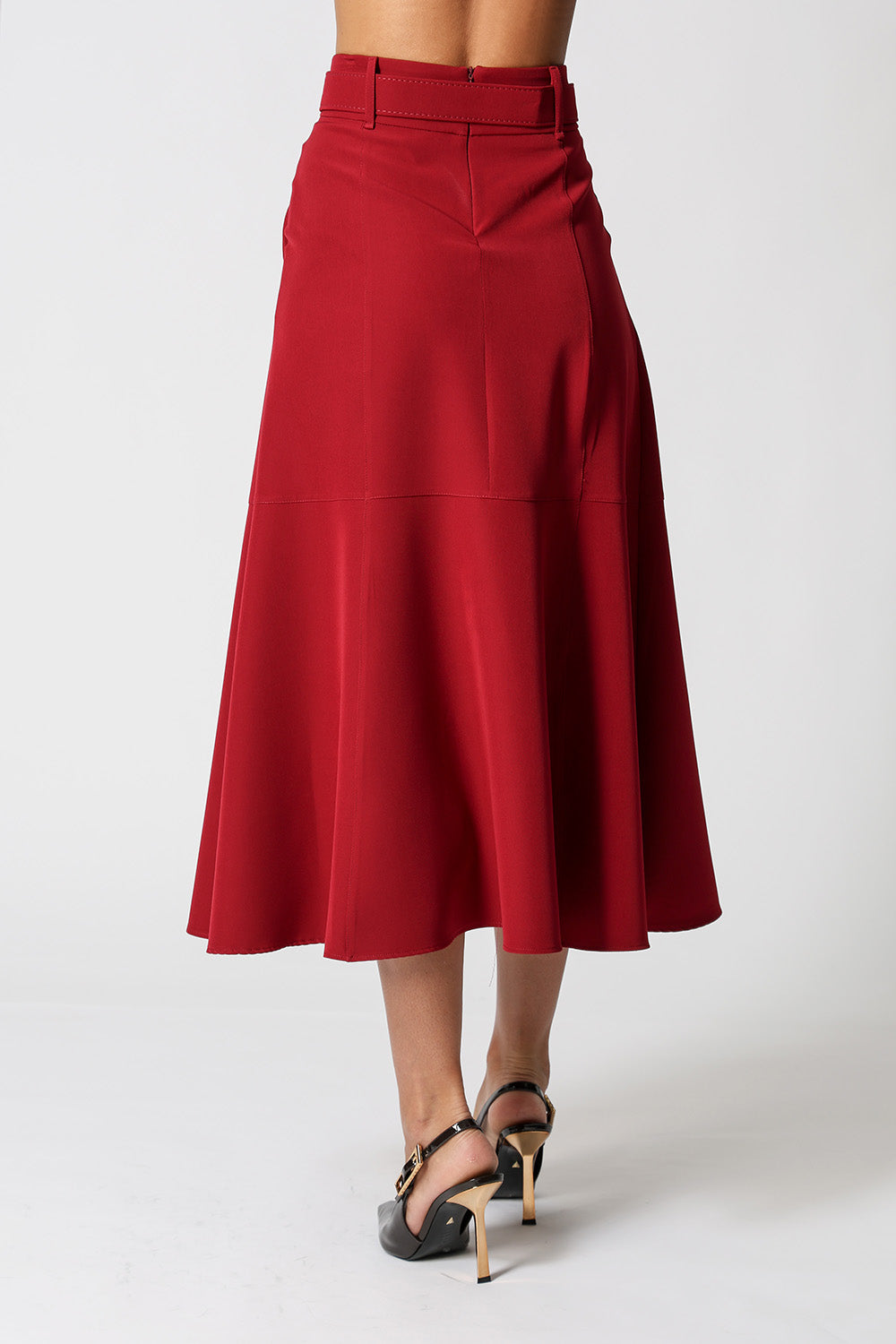 • Saia Midi De Alfaiataria Com Cinto - VINHO ESC