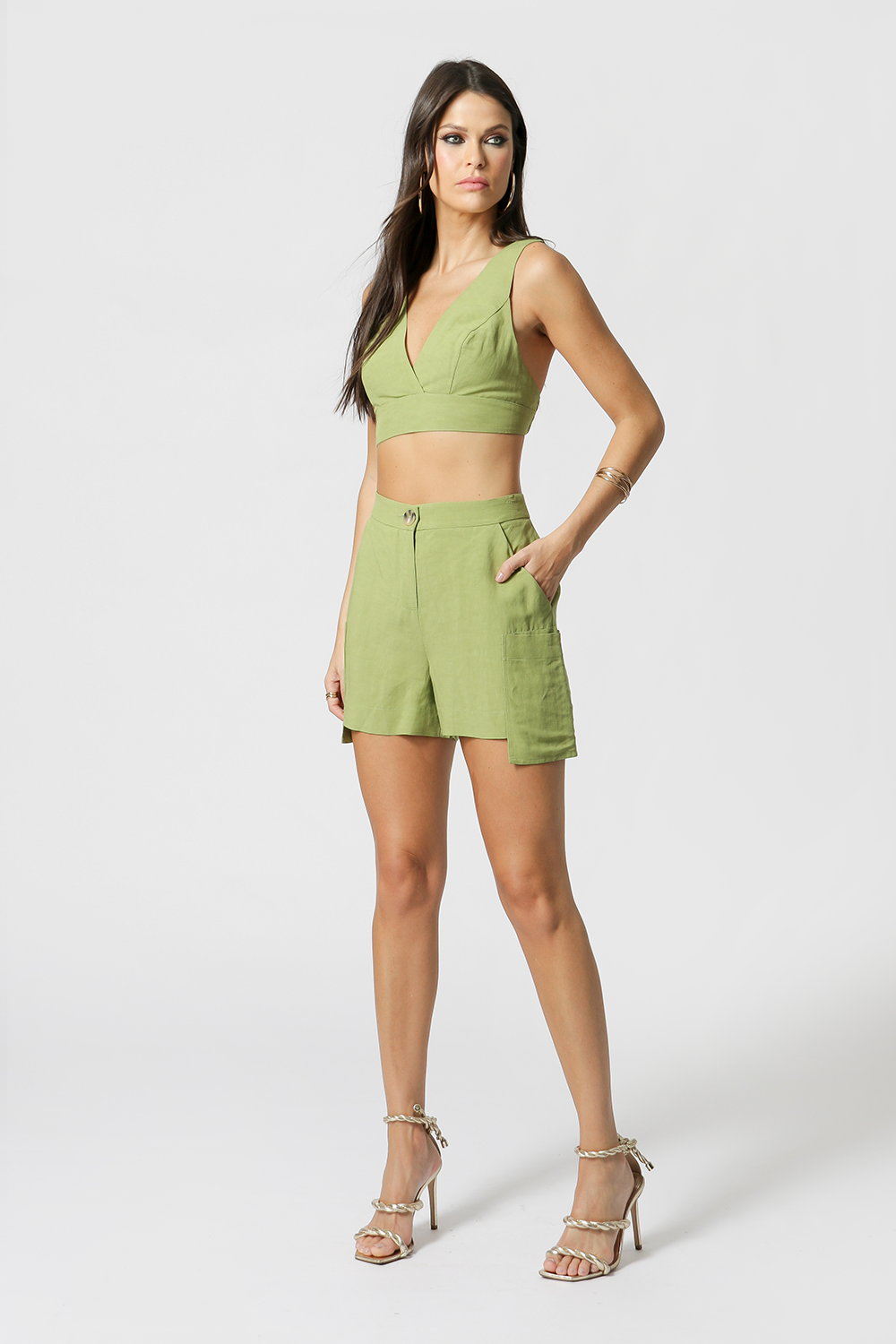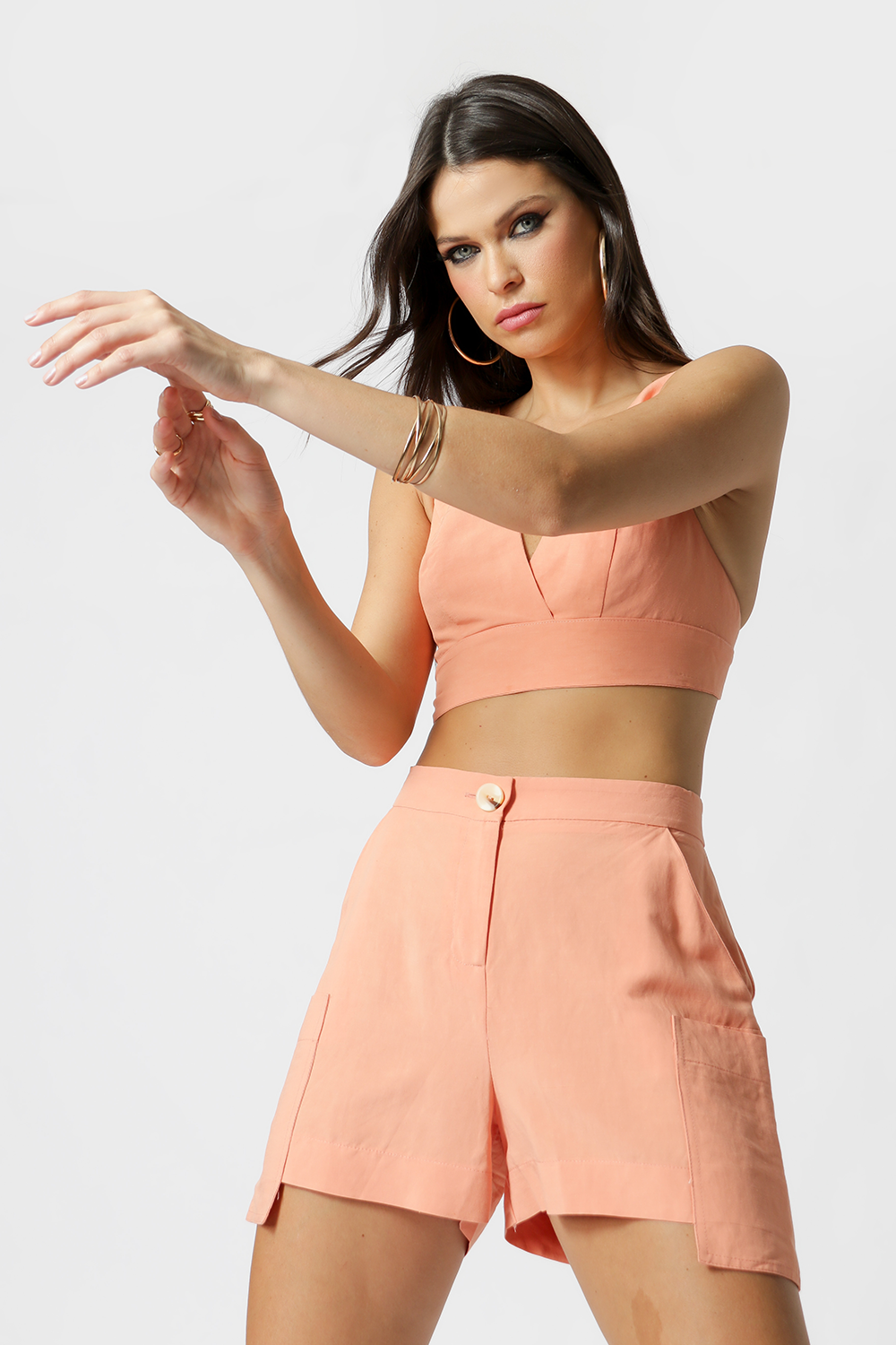Shorts com bolsos faca, traseiros, e laterais estilo cargo. Tendência perfeita para arrasar no look casual.