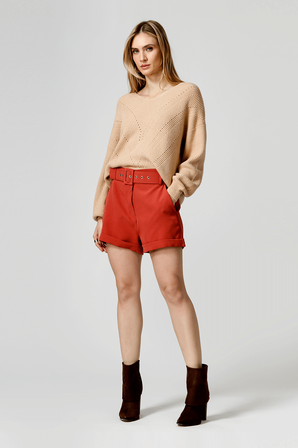 Shorts em tecido de alfaiataria, tem barra italiana, passantes e bolso faca. Acompanha um cinto forrado do mesmo tecido. Ideal para looks para trabalho ou para eventos especiais.