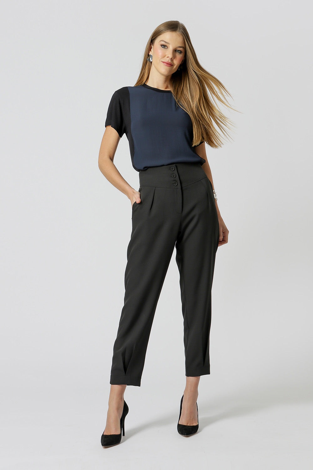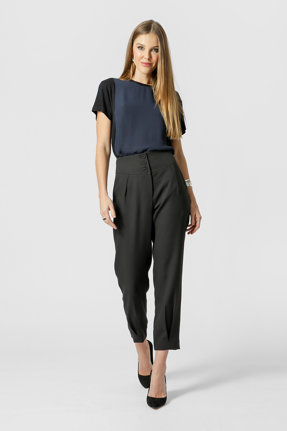 T-shirt com shape mais soltinho, recortes e mix de tecidos. Feita em Malha max e crepe fluído. O básico diferenciado que vai dar um UP no seu look!
