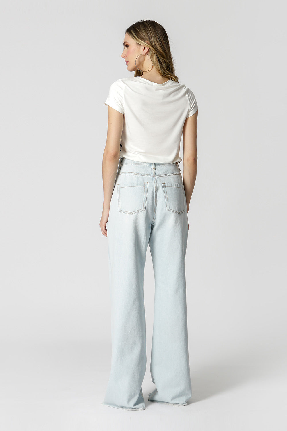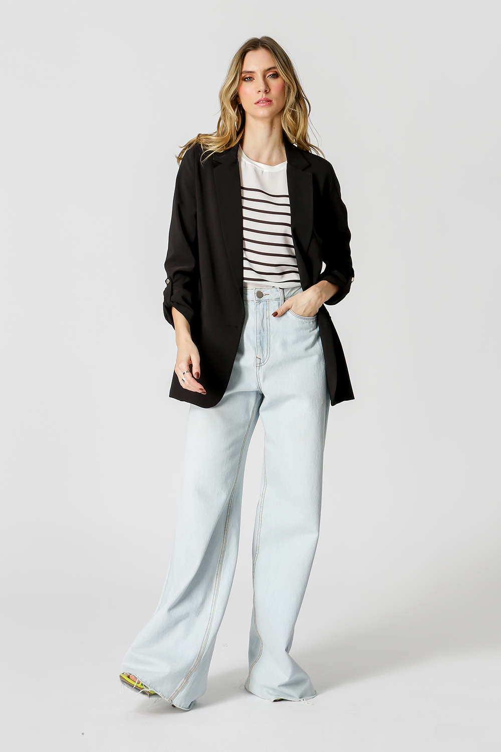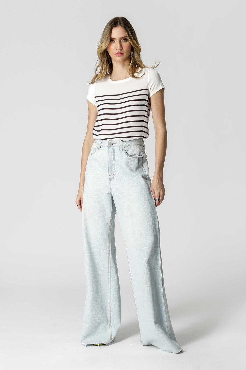 T-shirt com mix de tecidos, costas em malha e frente em tecido crepe fluído. Uma peça versátil e prática para o dia a dia.