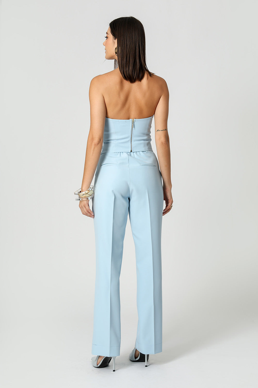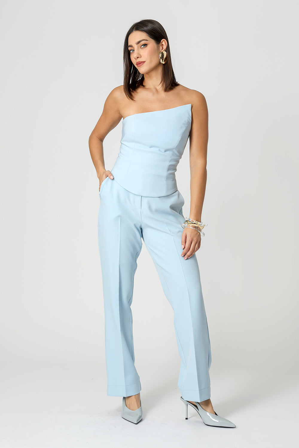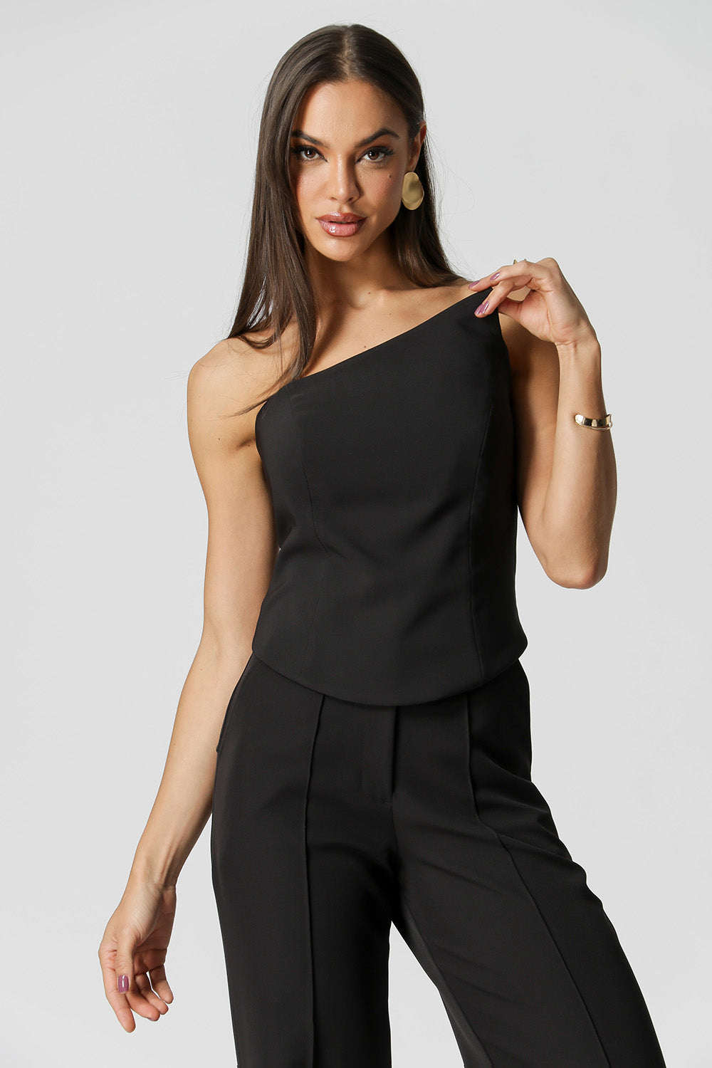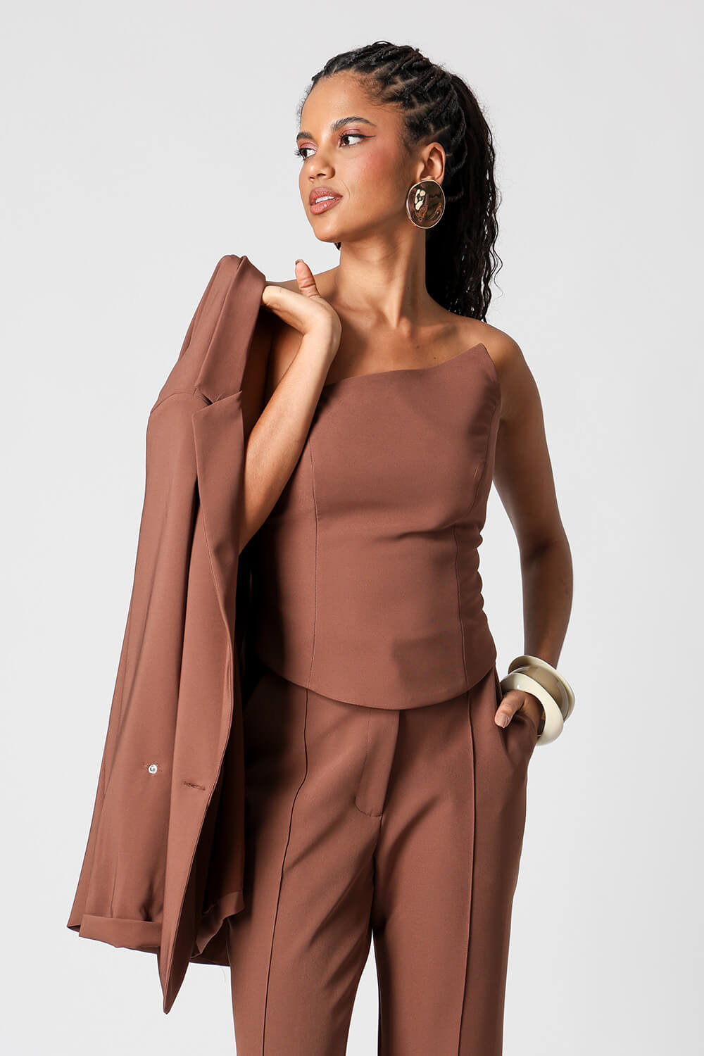 Top de alfaiataria assimétrico com zíper nas costas. Um modelo super atualizado e perfeito para compor vários looks night.