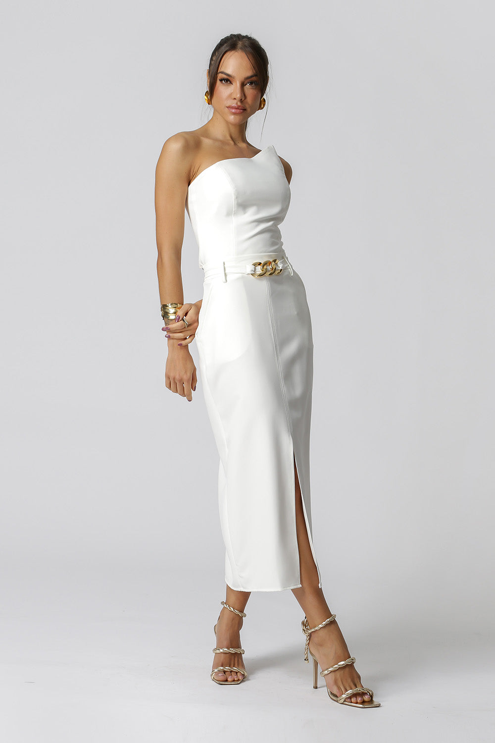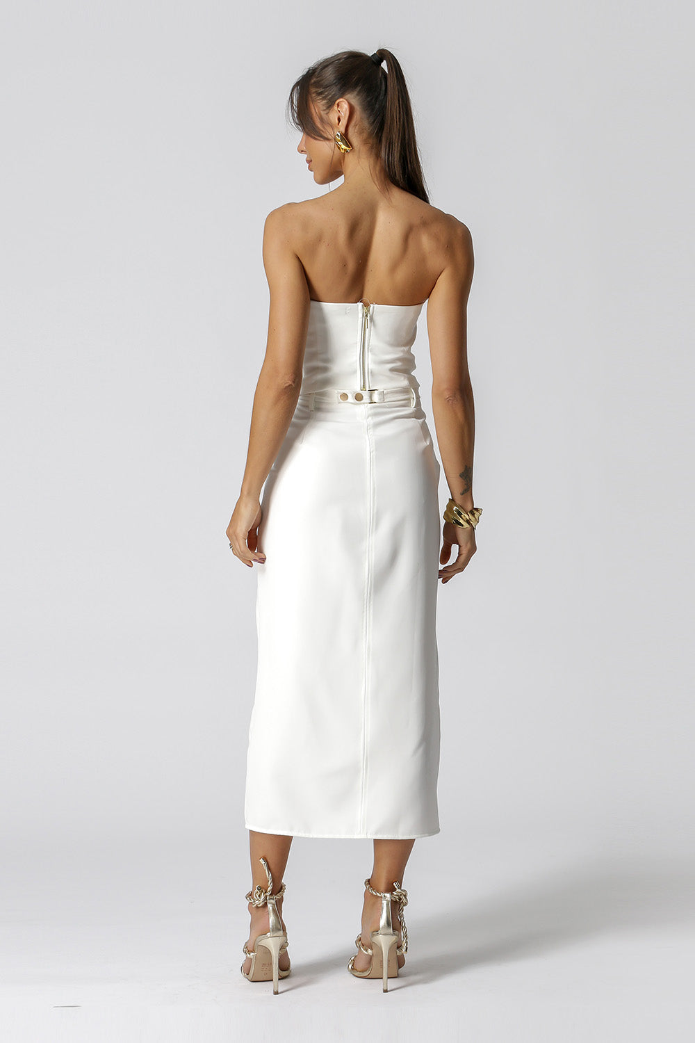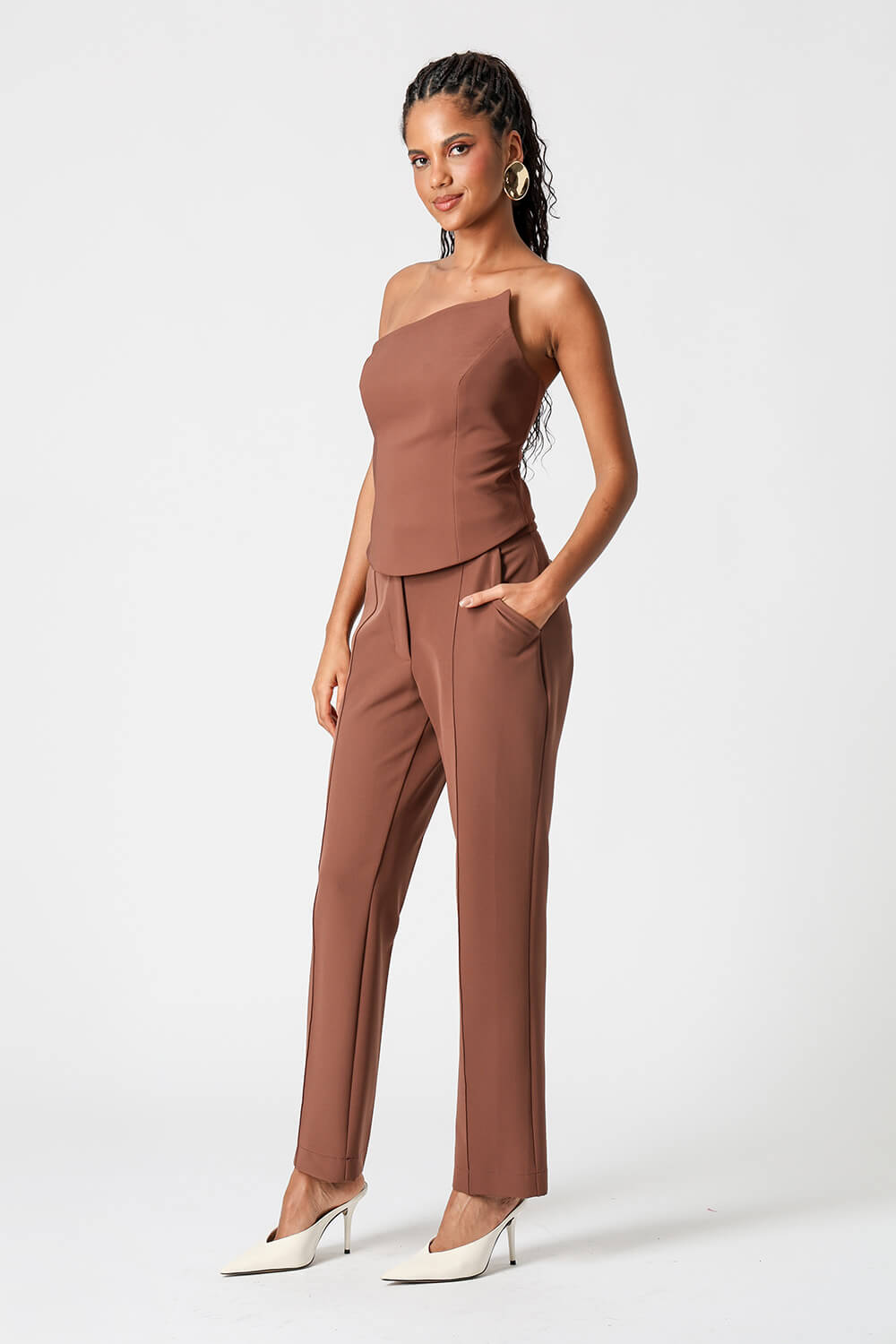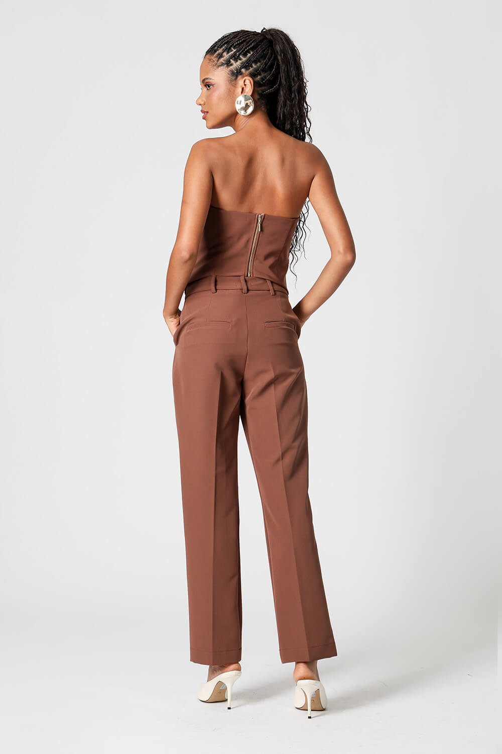 Top de alfaiataria assimétrico com zíper nas costas. Um modelo super atualizado e perfeito para compor vários looks night.