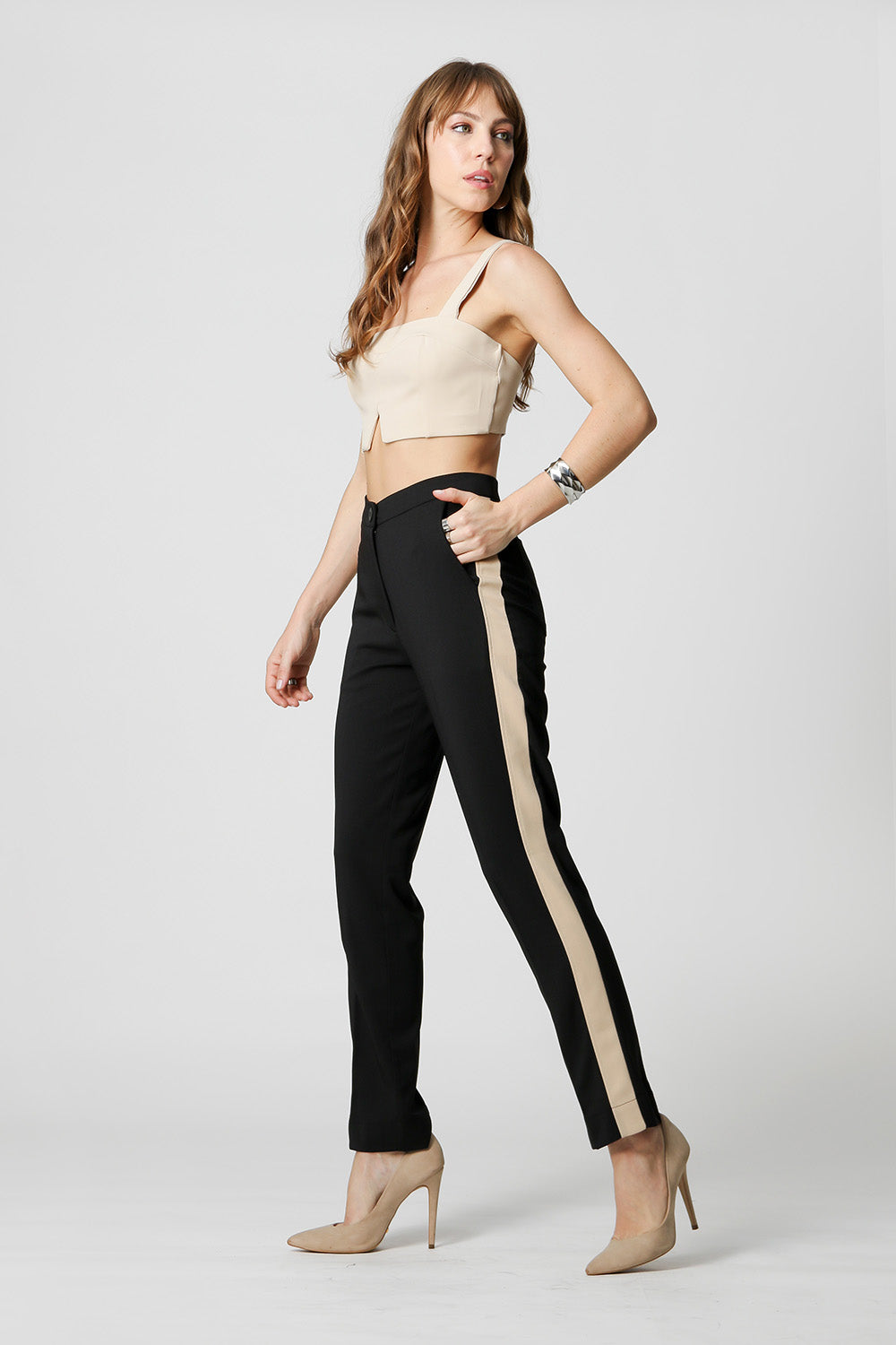Top com detalhe de fenda na frente e elástico atrás. Um peça feita em tecido Alfaiataria que possui uma silhueta justa e incrível para compor look casual.