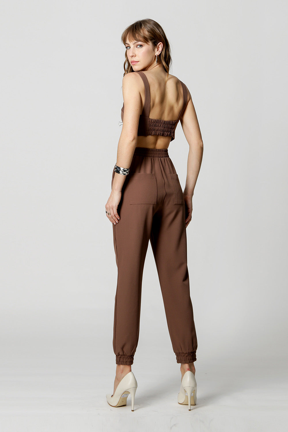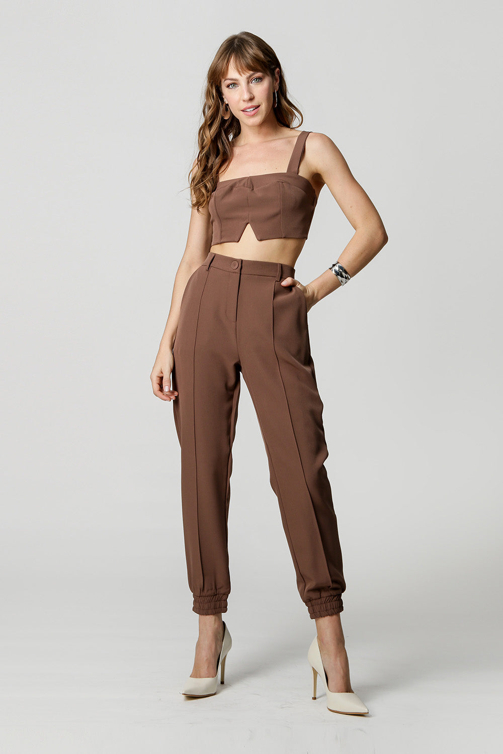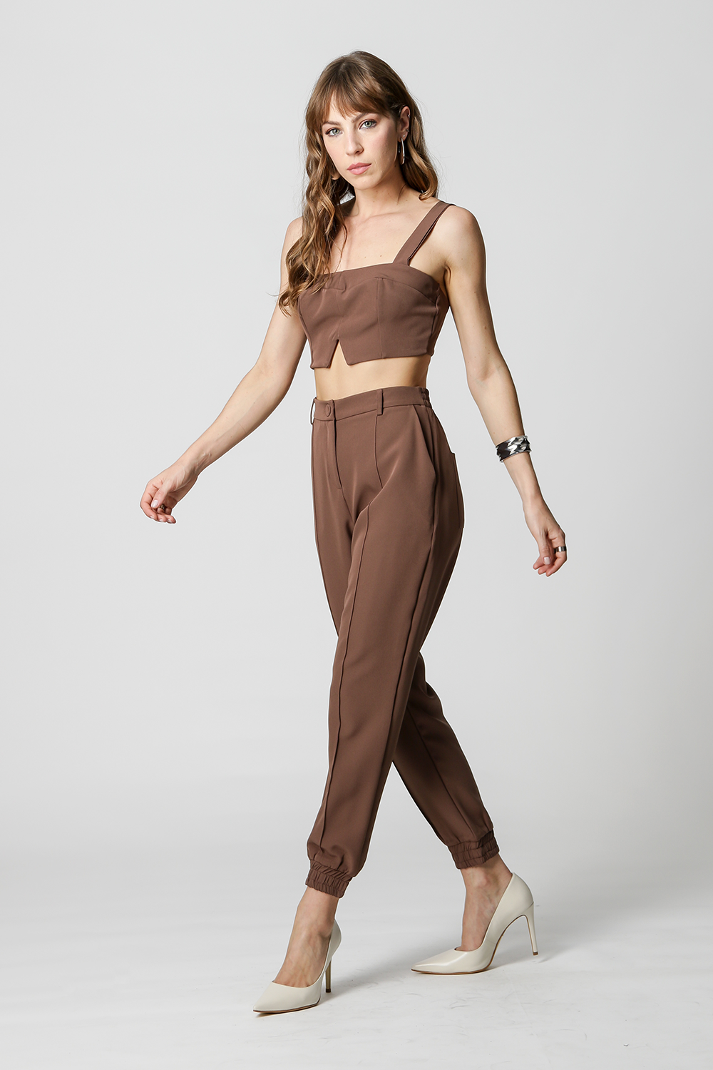 Top com detalhe de fenda na frente e elástico atrás. Um peça feita em tecido Alfaiataria que possui uma silhueta justa e incrível para compor look casual.