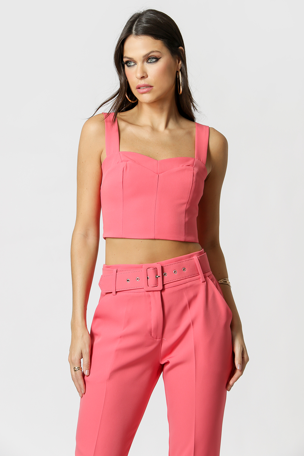 Blusa de comprimento cropped, confeccionada em alfaitaria. Possui alças largas, um lindo decote princesa com recortes e detalhe de lastex nas costas para um melhor caimento no corpo. Peça para compor vários looks casuais, como bermuda e sobreposta a blazer.