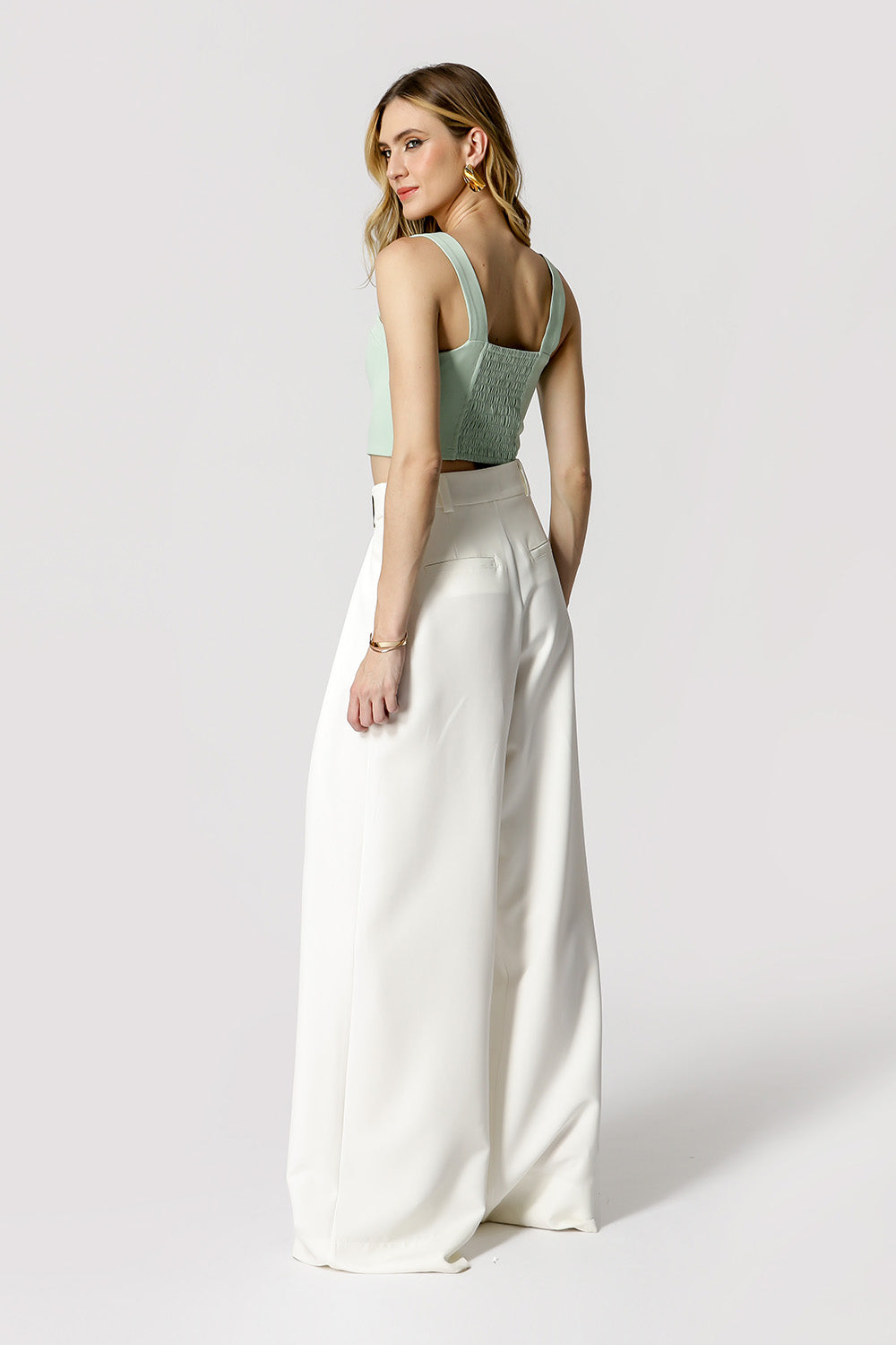 Blusa de comprimento cropped, confeccionada em alfaitaria. Possui alças largas, um lindo decote princesa com recortes e detalhe de lastex nas costas para um melhor caimento no corpo. Peça para compor vários looks casuais, como bermuda e sobreposta a blazer.
