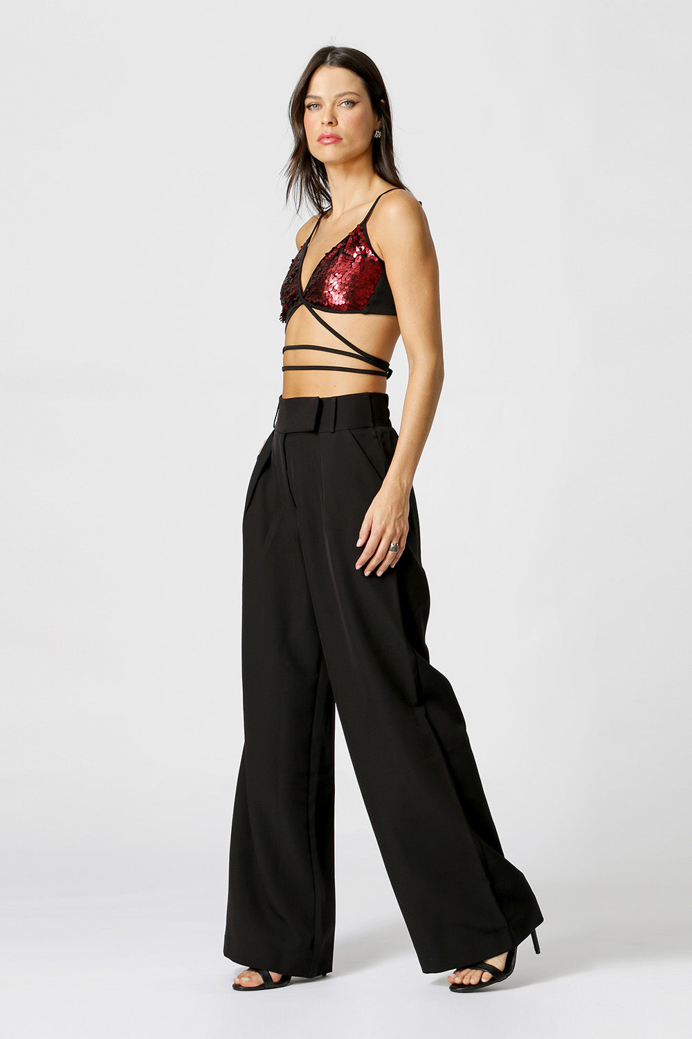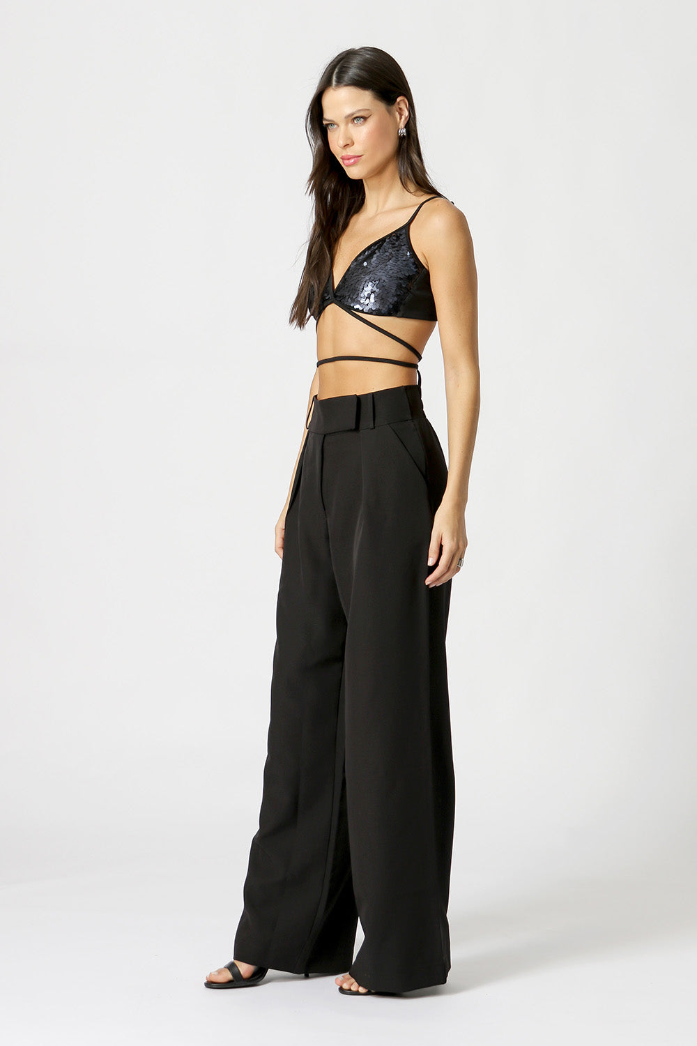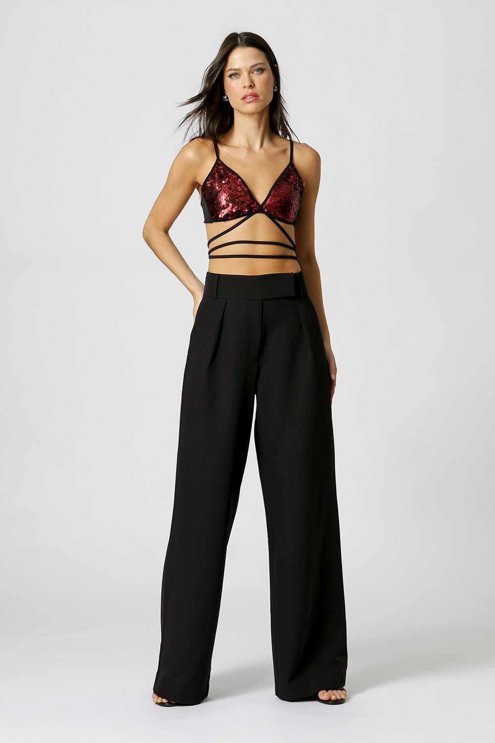 Blusa top com detalhe de tiras para amarração. Feito em malha paetê. Perfeita para arrasar na night!