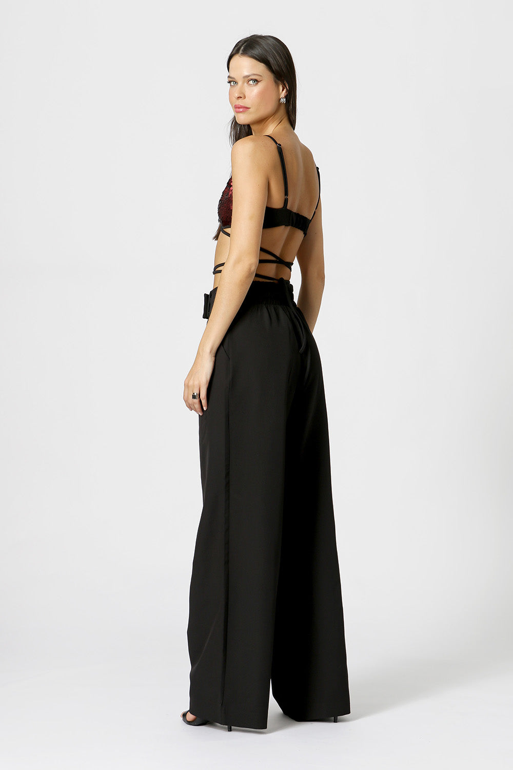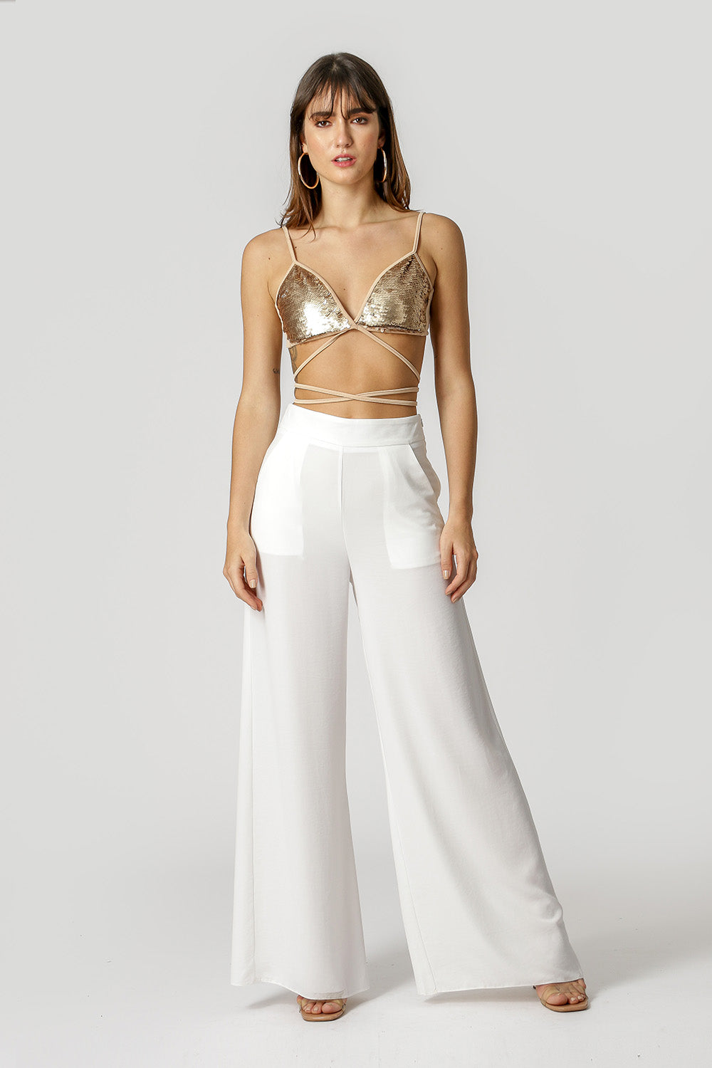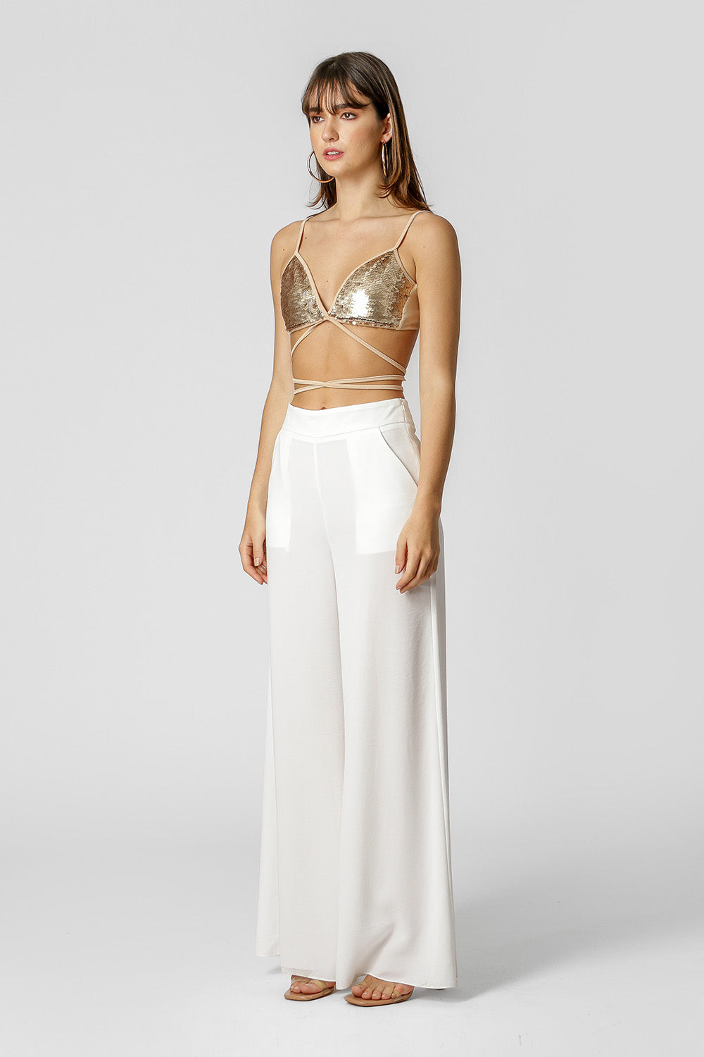 Blusa top com detalhe de tiras para amarração. Feito em malha paetê. Perfeita para arrasar na night!
