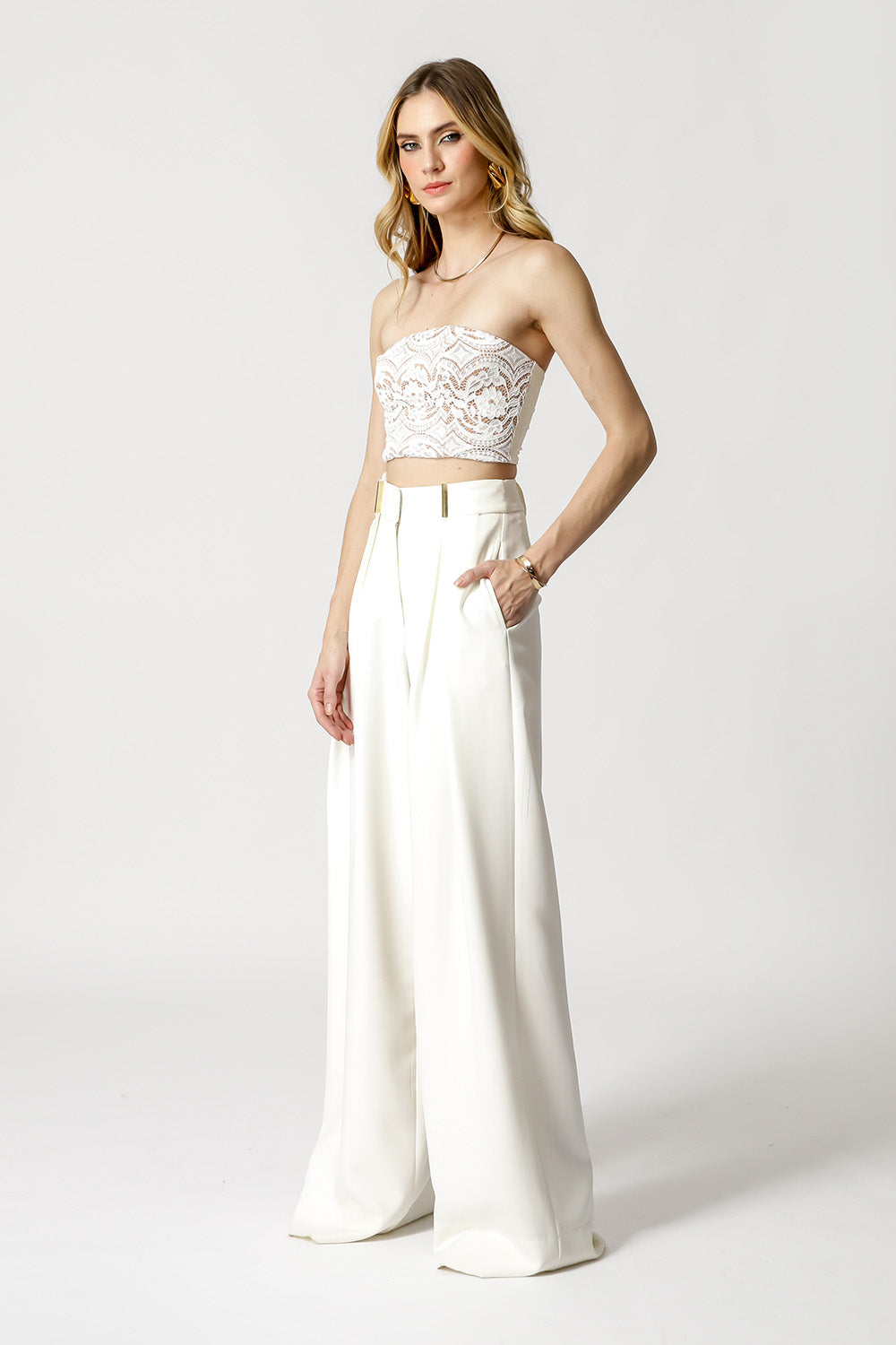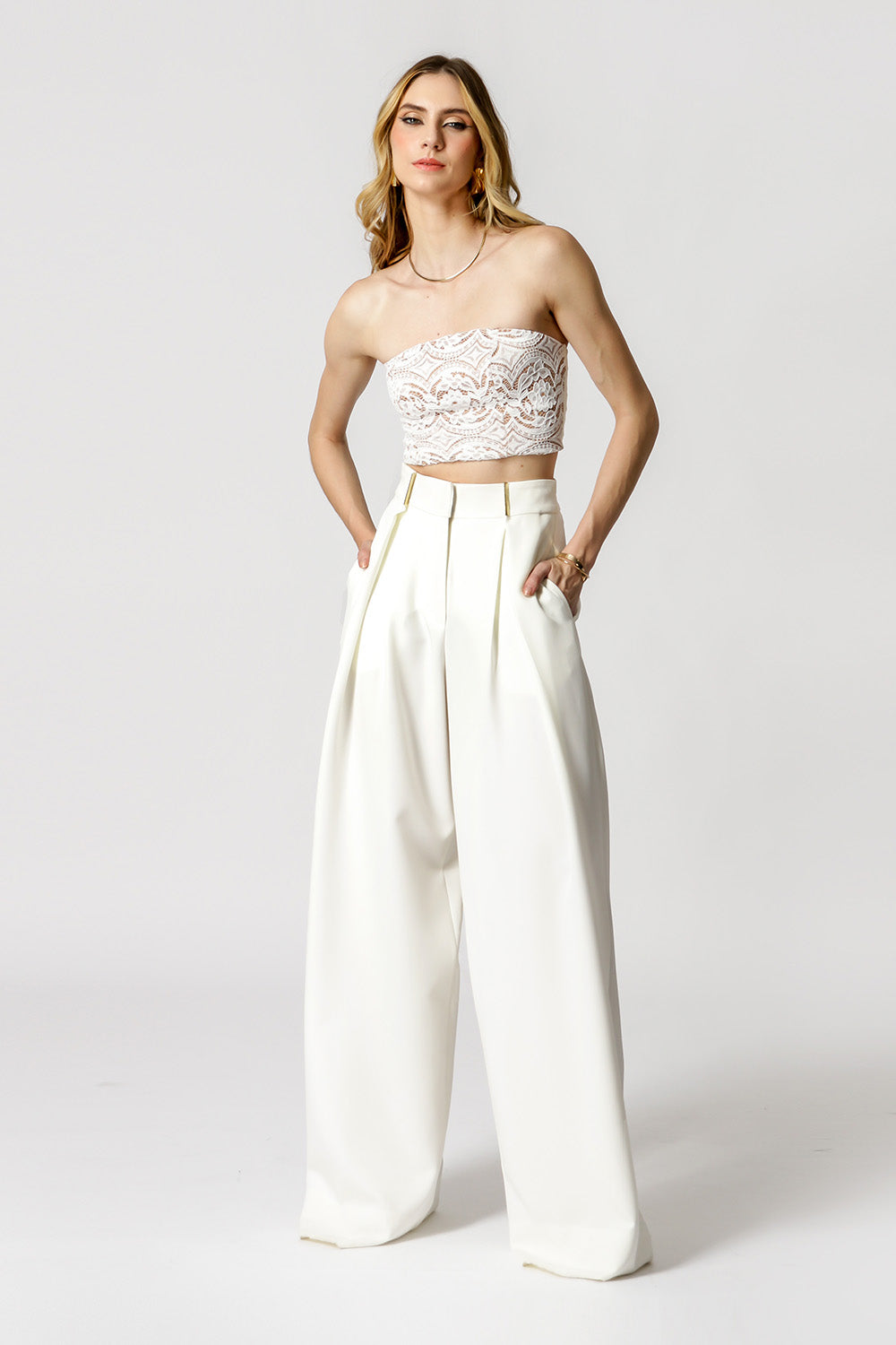 Top faixa confeccionado em malha Amni sobreposto com renda. Modelo que é a cara do verão e compõe perfeitamente com nossa saia de renda.