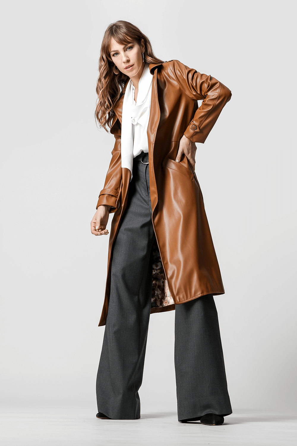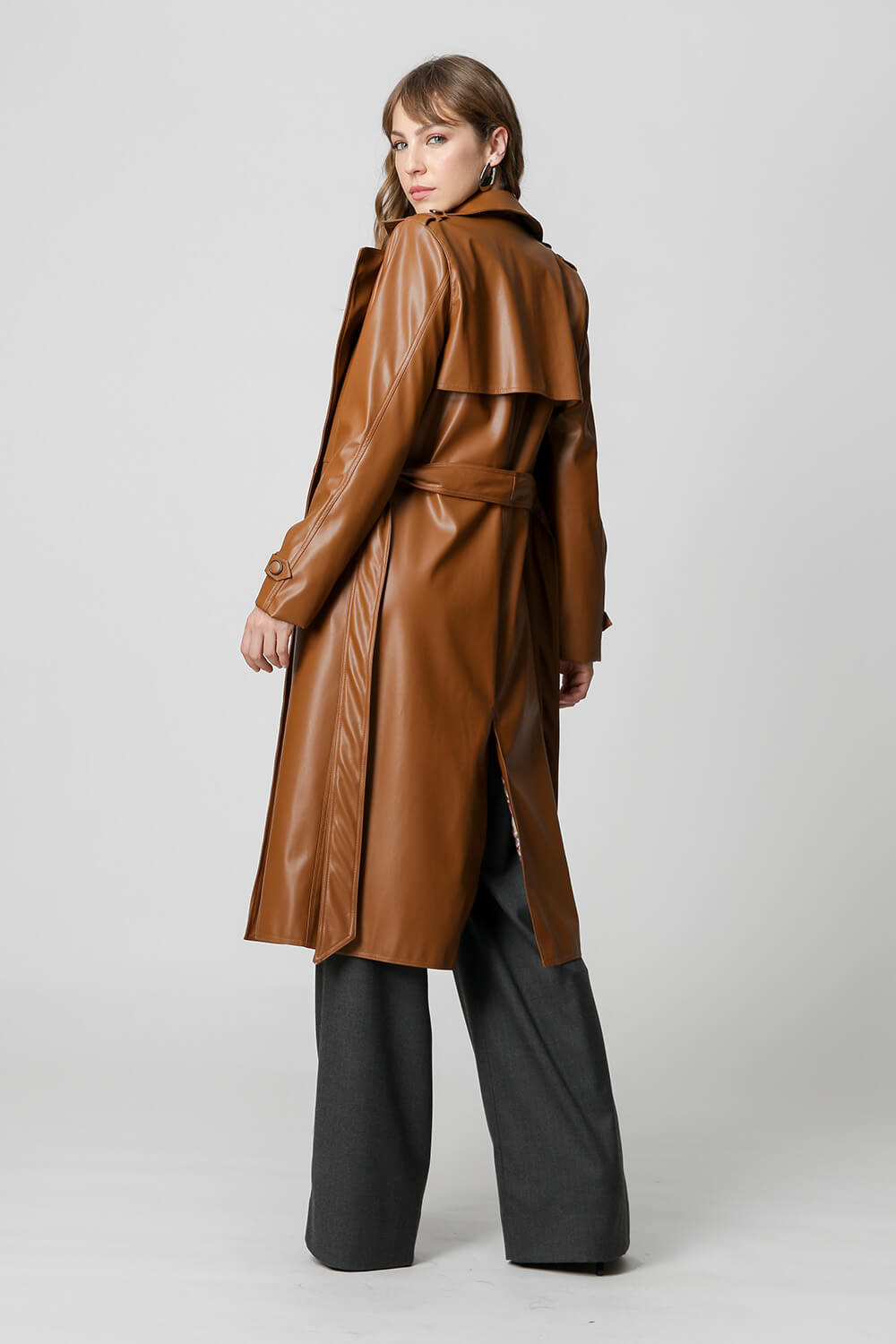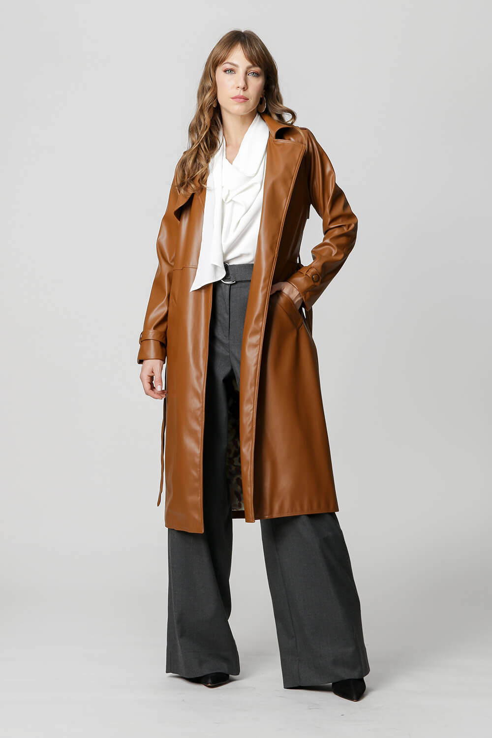 Trench coat com botões forrado do próprio tecido com bolso,faixa para prender na cintura.Um modelo confeccionado em tecido couro sintético.Uma peça classica e necessária em qualquer guarda-roupa para compor diversos looks.