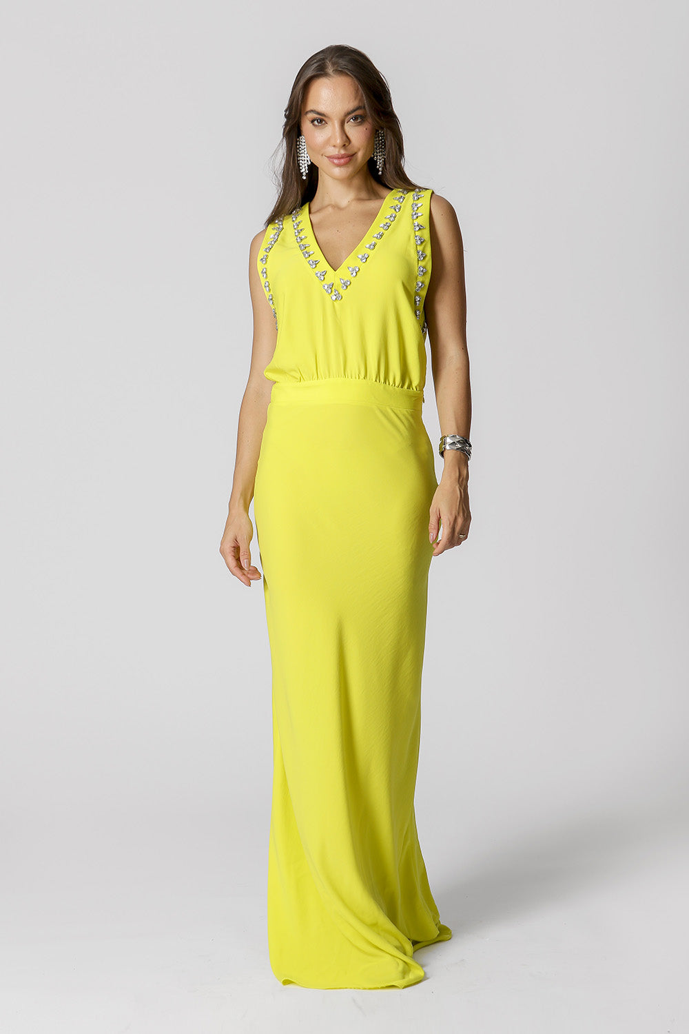 Vestido bordado com predraria, peça cheia de estilo para arrasar em diversas ocasiões.
