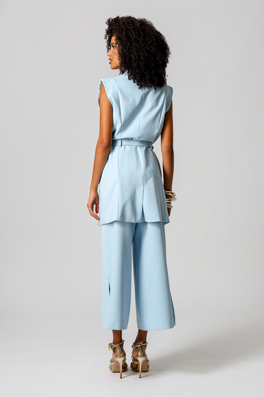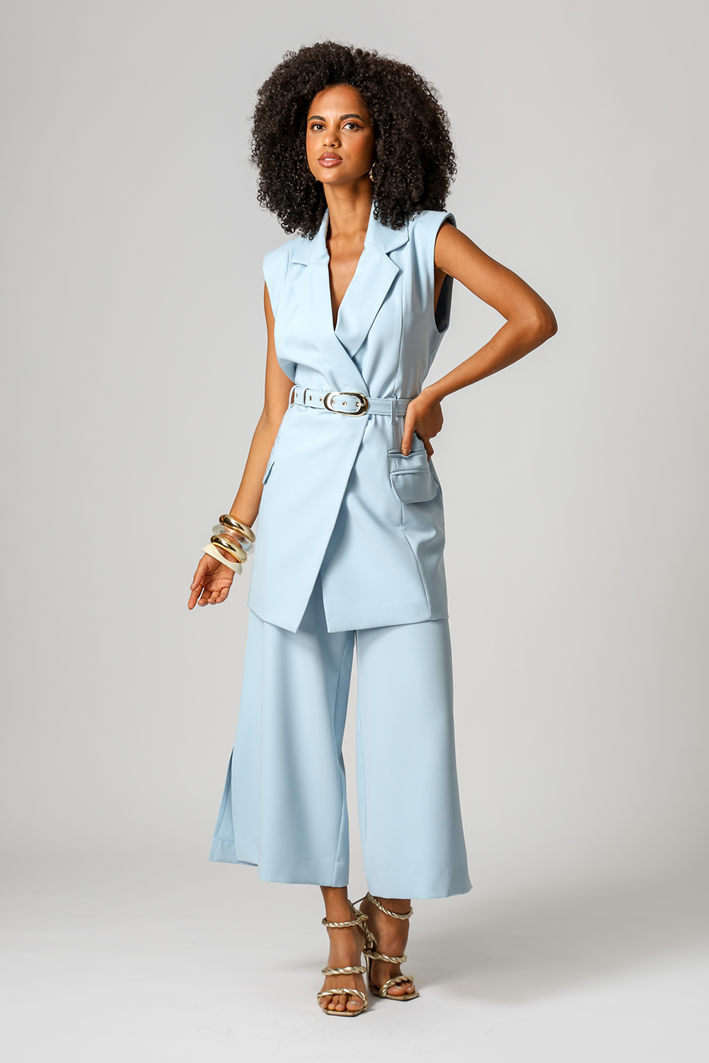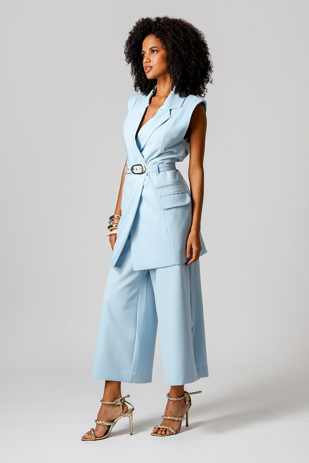 Vestido estilo colete em alfaiataria, com bolso funcional com lapela e cinto removível que define a silhueta. Peça versátil e elegante para diversas ocasiões.