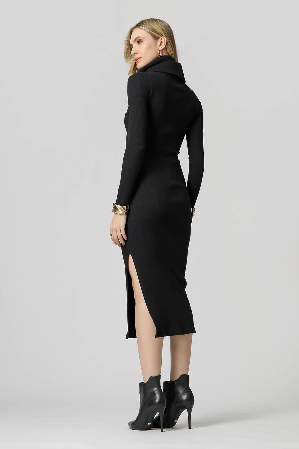Vestido com malha canelado heavy. Um modelo básico e moderno para mood casual.