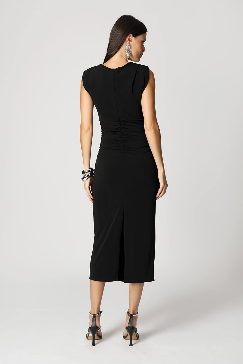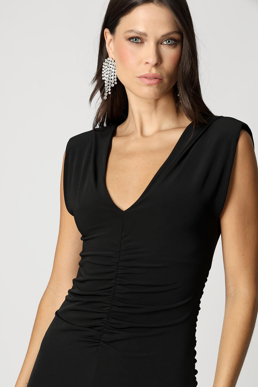 Versátil e elegante, esse vestido em malha ITY pode ser usado com decote V na frente ou nas costas. Conta com ombreiras que estruturam o look e franzido na cintura, valorizando a silhueta. Confortável, moderno e perfeito para diversas ocasiões.